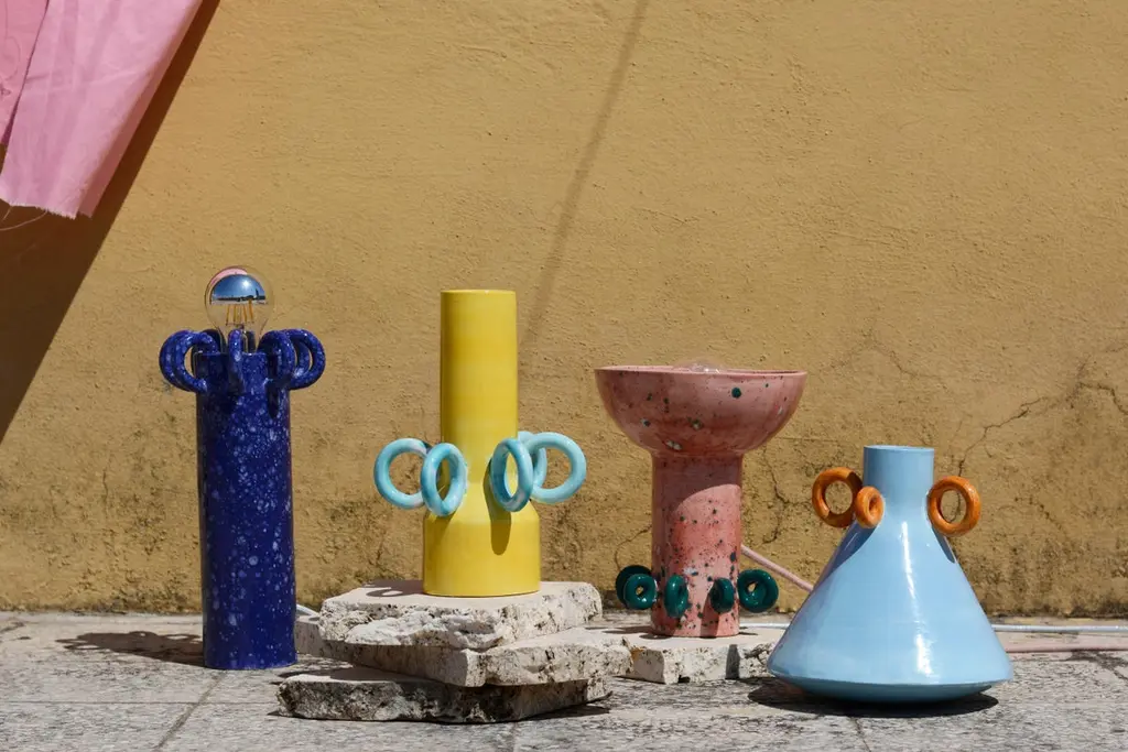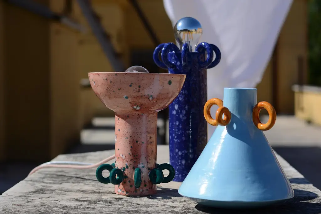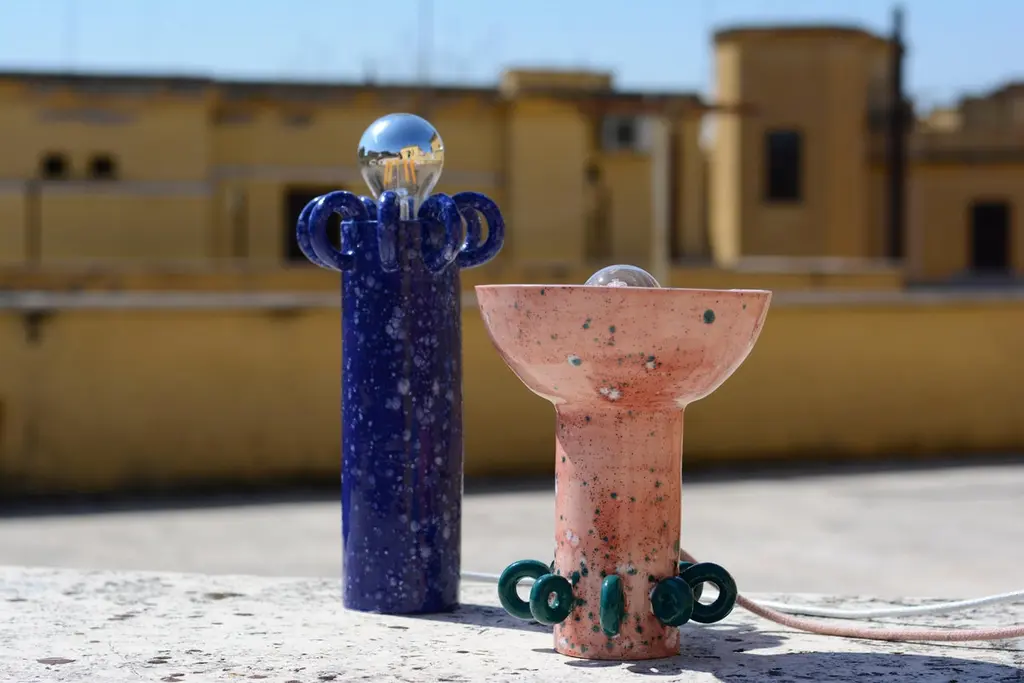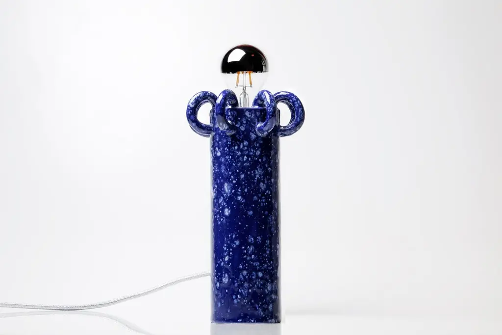 Riva ceramic table lamp by Arianna De LucaDimensions: Height 30 x diameter 10 cmCable length: 1.5 mMaterials: Ceramic Riva table lamp is part of the Folcloristica series. A collection inspired by the mood and lifestyle of the Southern Italian villages. Elegant and bold, it becomes a sculptural object.The blue, silvery colours and reflections evoke the waves in the Mediterranean Sea.Fleeting elements are reinterpreted and transferred into a solid and sculptural piece. The simple, cylindrical shape is enriched by original ring handles. This piece has been designed, handcrafted and decorated by the designer in her studio in Rome.The products might show slight variation compared to the pictures as they are the result of a complex, artisanal process aimed at making every piece truly unique.Arianna De Luca is interior design combined with handcrafted ceramics.In each of her projects it is easy to spot her passion and interest for the artisanal landscape and recurrent elements from her Mediterranean background. Constantly seeking authenticity, she mainly focuses on the narrative and emotional side of her designs. As an interior designer she experiments with eclectic mixes and she designs exclusive bespoke objects for specific environments. She worked as interior designer in UK, Italy and South America. In 2017 she started working with ceramics in order to create bespoke pieces for her interior projects.Recently, she launched her own ceramic design collection made of cheerful pieces with bold shapes and vibrant Mediterranean colours. She studied design in Rome and London, where she got an MA degree from Central Saint Martins.Currently based in Rome, where she runs her studio and artisanal workshop.