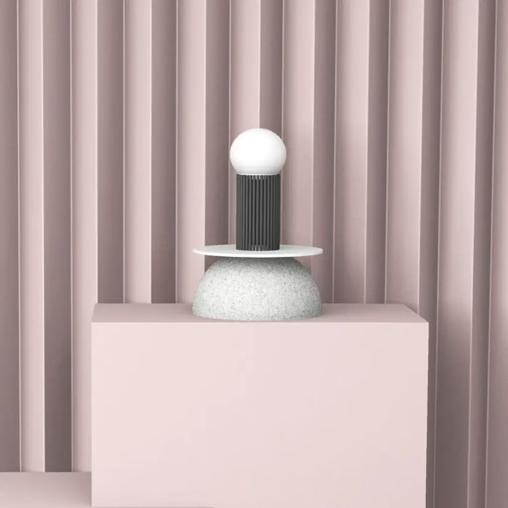 Rivelarsi is a lamp with basic and minimal geometric lines. A composition with sculptural tones but in reality, once the sphere is lifted, it reveals its identity, a lamp with soft tones.