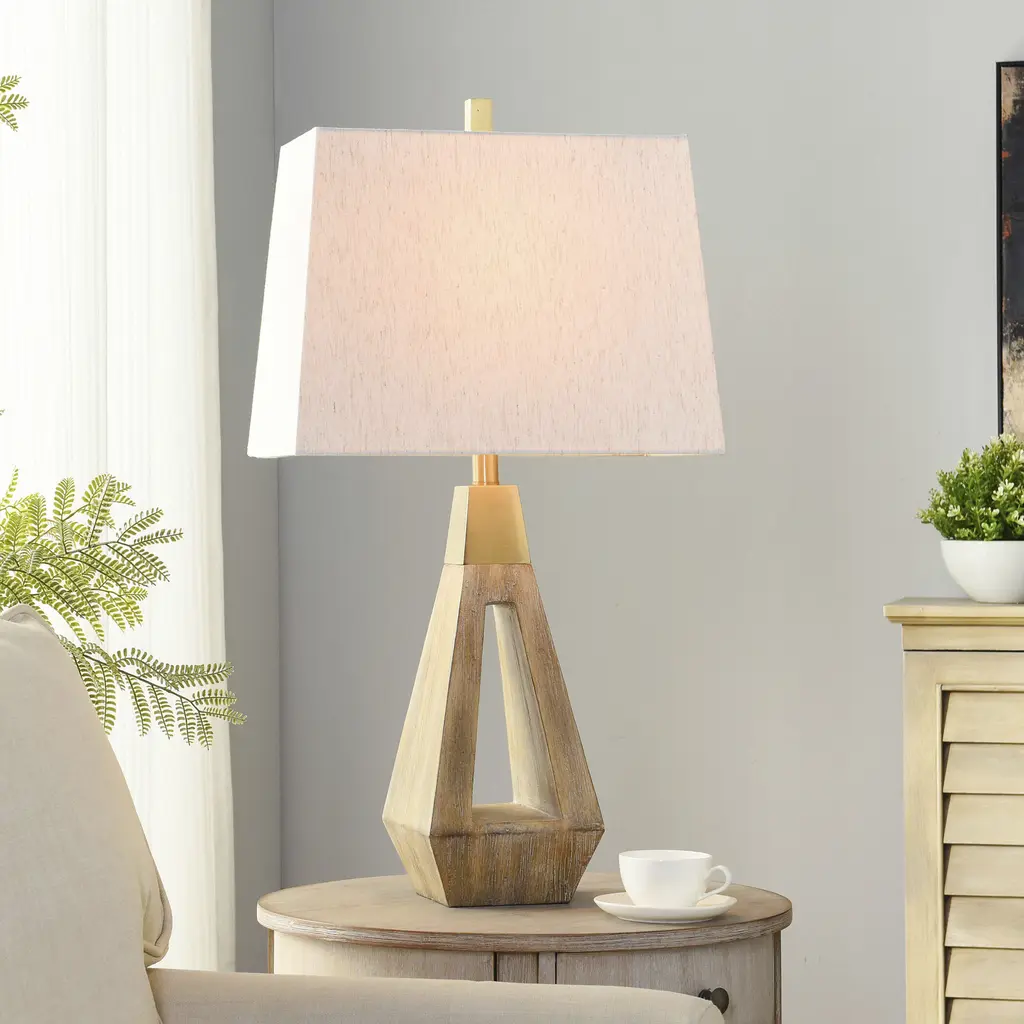 Roanoke Brown Table Lamp - Polyresin Brushed Triangle Cut Out Body - Natural Shade