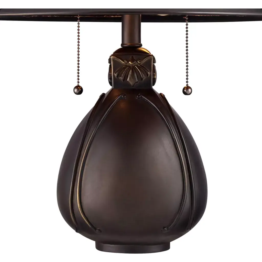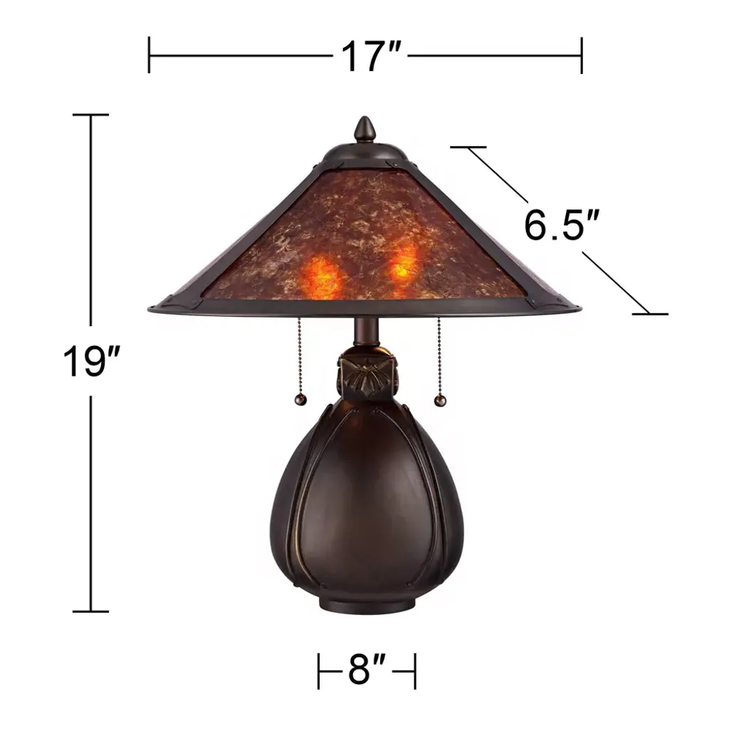 The best Tiffany-style lamps are the ones that bring classic style, vibrant color, and artful design to your living space. This spectacular pottery table lamp in bronze finish takes its inspiration from the Arts and Crafts movement. A beautiful and warm mica mineral shade and double brass finish pull complete the look. Perfect for Craftsman, Mission-style, and Spanish decor.