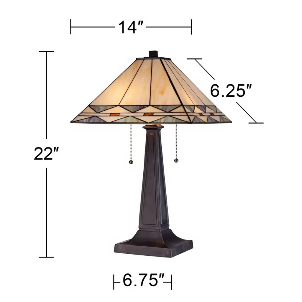 Robert Louis Tiffany Art Deco Accent Table Lamp 21.5" High Mission Bronze Stained Glass Shade For Living Room Family Bedroom Bedside Office