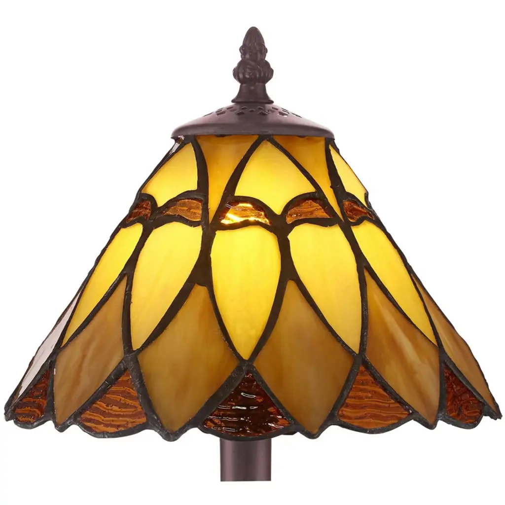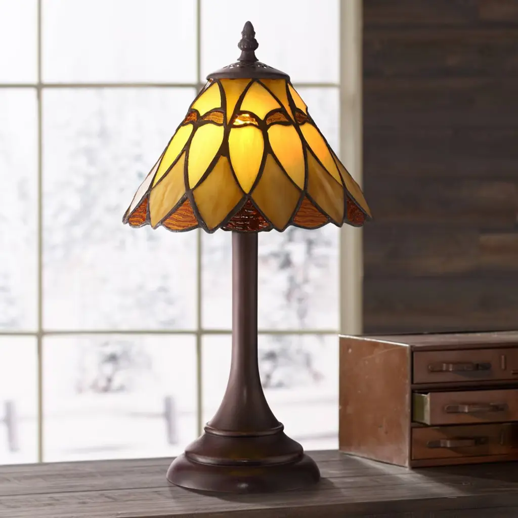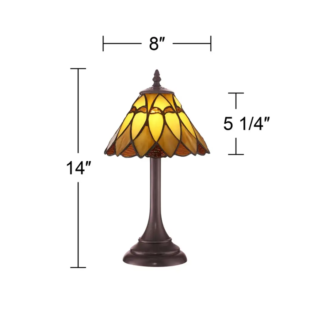 Robert Louis Tiffany Austin Mission Accent Table Lamp 14" High Led Warm Brown Amber Art Glass Shade For Bedroom Bedside Nightstand Office House Home