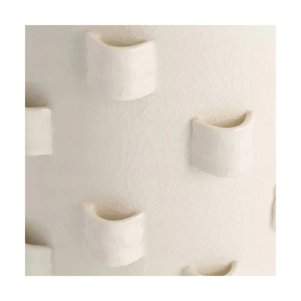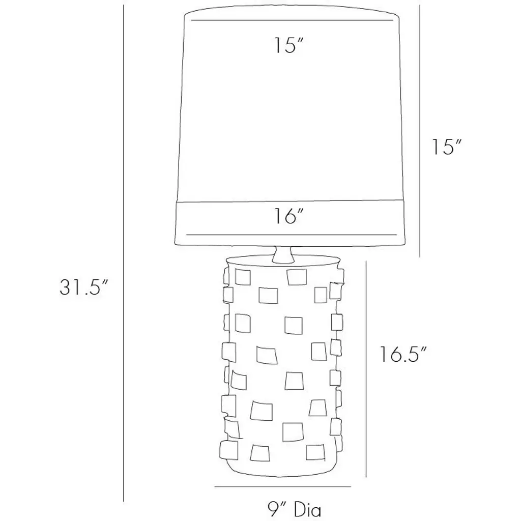 Destined to be a porcelain classic or at least everyone’s new favorite. Each loop has been sculpted and attached by hand prior to glazing creating a subtle pattern and dimensionality to what could have been an ordinary column lamp. The design is further enhanced by the ivory crackle finish and the tall ivory drum shade with 3 inch flat-band trim on the bottom only.