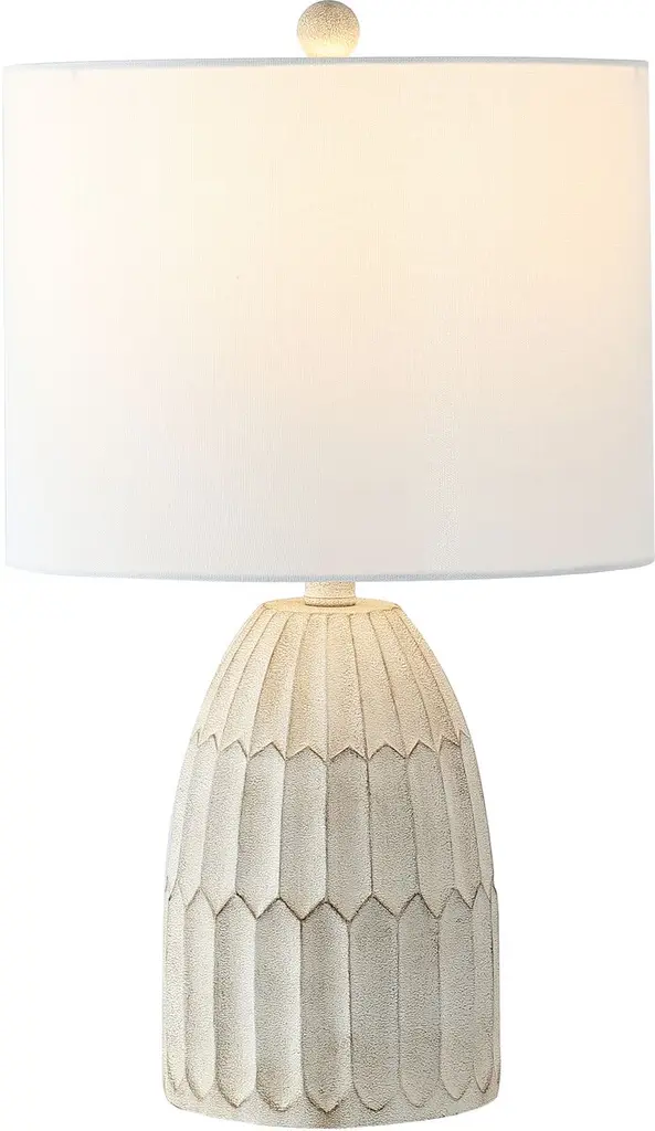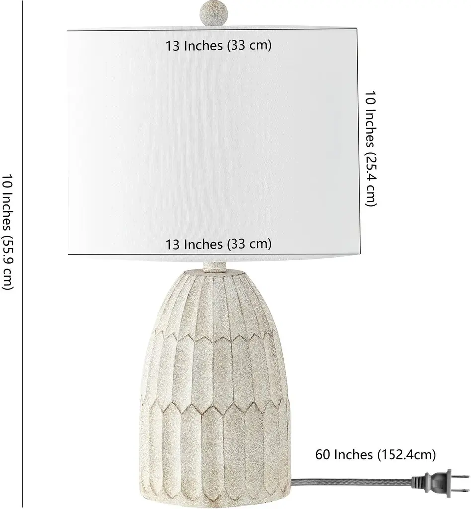 The gently weathered finish gives this table lamp the allure of a vintage find while calling attention to the textured hexagons covering its surface. The white cotton shade adds to the elegance.