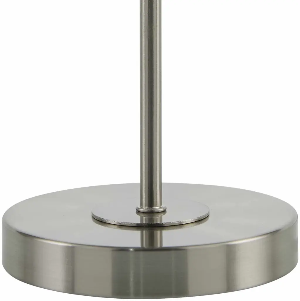Collection: Roccabruna Colors: Metallic - Nickel, White, Translucent Material: Body: Iron / Base: Iron / Shade (Outside): Linen / Shade (Inside): Linen Styles: Contemporary Made In: China Lighting Type: Accent Table Lighting Base: Iron Base Color: Metallic - Nickel Shade Material: Linen, Linen Shade Color: White, White Cord Length: 6' Switch Type: Line Number of Bulbs: 1 Socket Type: E-26 Bulb Wattage: 60W