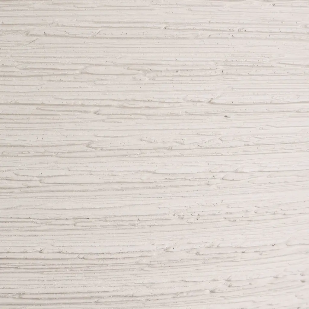 The Rocio Table Lamp Combines A Heavily Textured Ceramic Base With A Soothing Matte, Warm White Finish, Detailed By Horizontal Ridge Lines And Plated Antique Brass Accents. The Coolie Style Round Shade Is Covered In A Crisp White Linen Fabric.