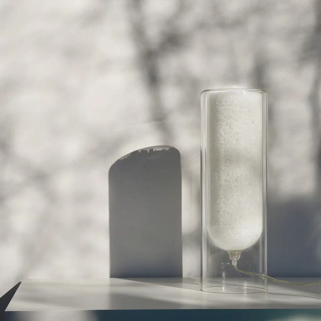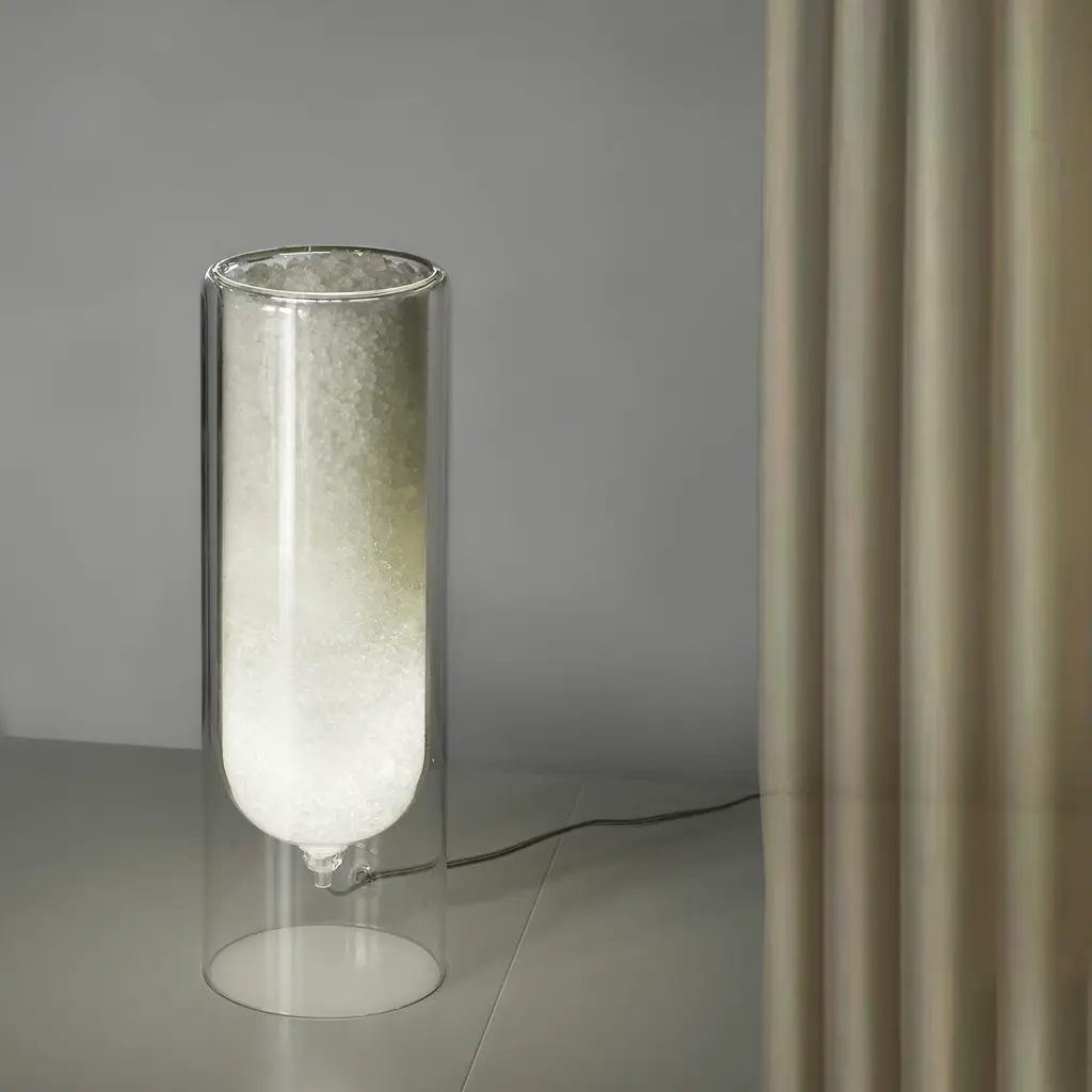 Suitable as a centerpiece, desk and table lamp, this lamp exploits pure rock salt crystals housed in its cylindrical body to turn into a natural humidity regulator. The included, low-consumption LED light (4W A++) lights up the crystals accenting their hue obtained with natural pigments. Suitable also as a fragrance diffuser by adding essential oils' drop onto the top. Rocklumìna lamps collection won the Green Product Award 2020. Please ask the Concierge for further options.