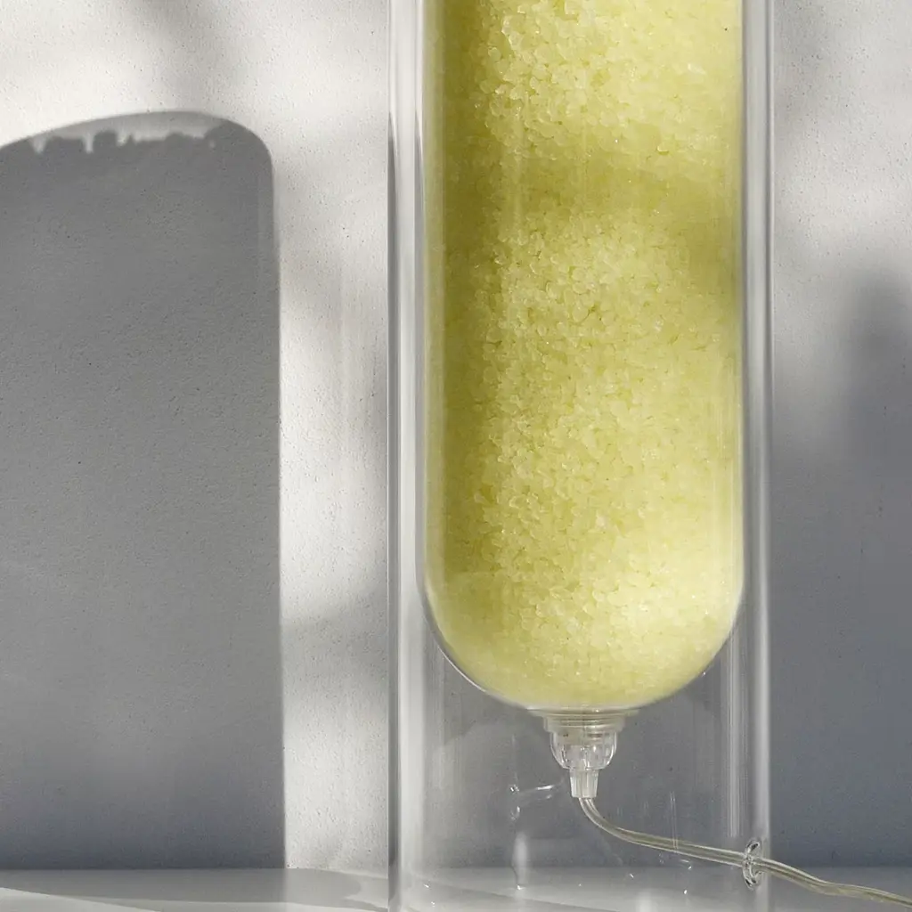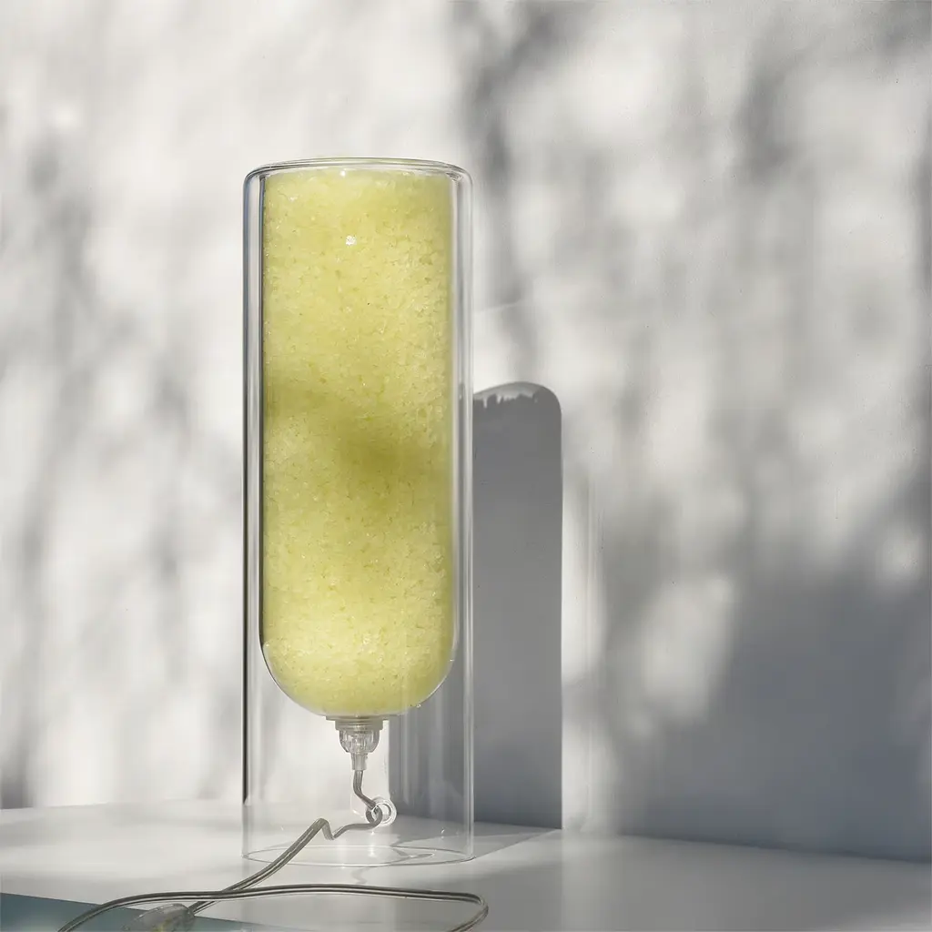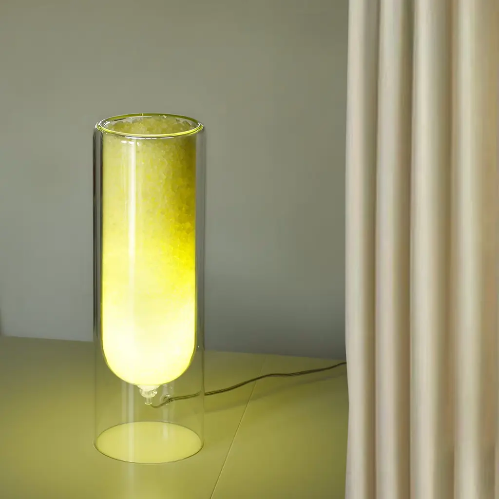 Suitable as a centerpiece, desk and table lamp, this lamp exploits pure rock salt crystals housed in its cylindrical body to turn into a natural humidity regulator. The included, low-consumption LED light (4W A++) lights up the crystals accenting their hue obtained with natural pigments. Suitable also as a fragrance diffuser by adding essential oils' drop onto the top. Rocklumìna lamps collection won the Green Product Award 2020. Please ask the Concierge for further options.
