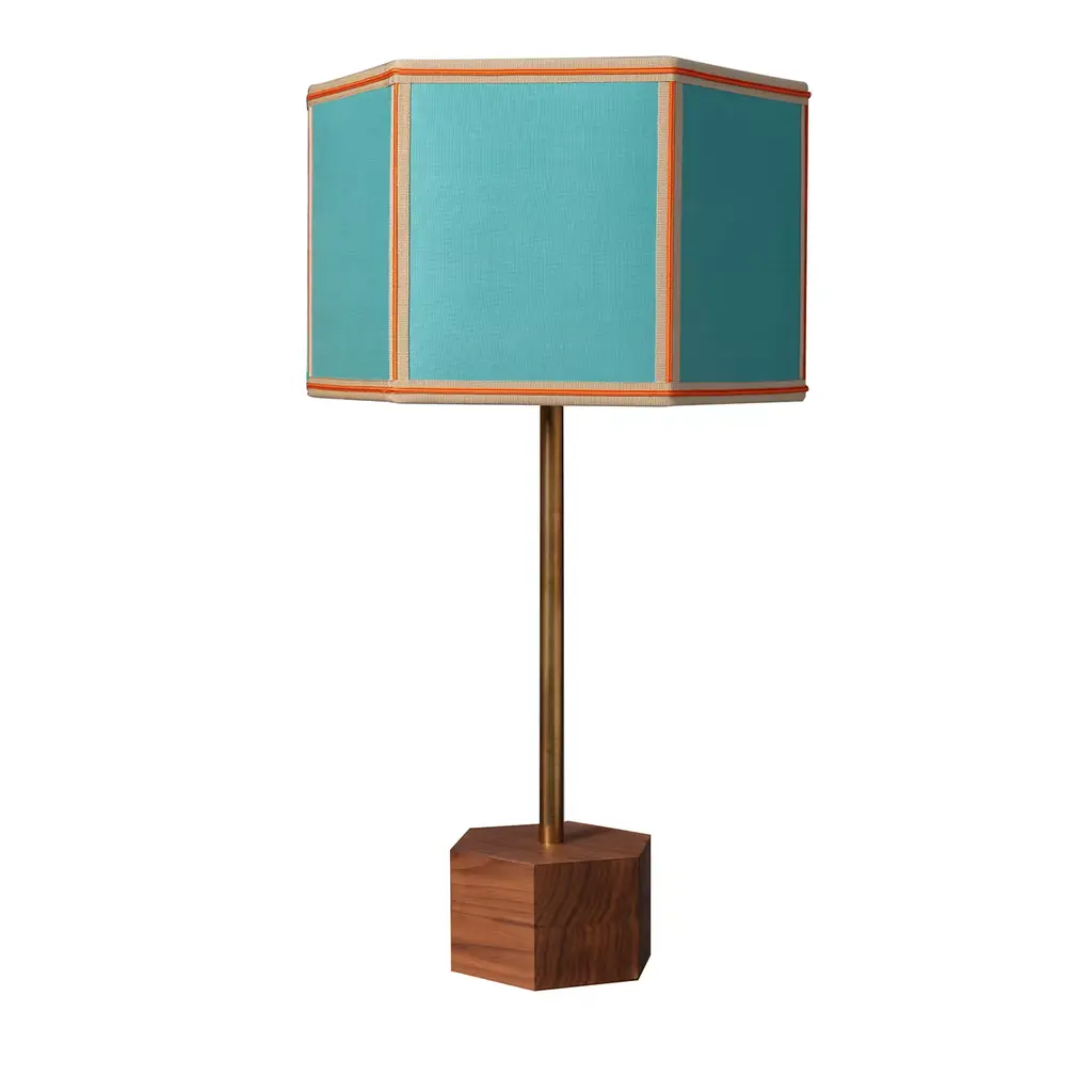 A timeless testament to clean architectural sophistication, this splendid table lamp is a distinctive design from the Roma Squared Collection of refined lighting fixtures. Handmade of red Travertine enriched with nickel-plated brass details, it features a sleek and matching shade hand-sewn from brick red linen, complemented with a cotton-trimmed metal frame. Available in yellow, blue, and warm white, or with a white Travertine base, it supports an E27 LED bulb.