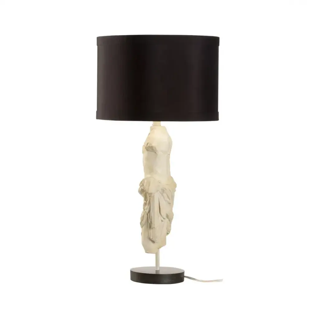 INSPIRED BY THE EARLY ROMAN DYNASTIES, THIS UNIQUE TABLE LAMP FEATURES A HAND CARVED MALE STATUE. THE ANTIQUE STONE FINISH AND QUALITY CRAFTMANSHIP PROVIDE A STUNNING PIECE OF ART PERFECT FOR A STUDY, LIBRARY OR SEATING AREA IN A TRADITIONAL DECOR.