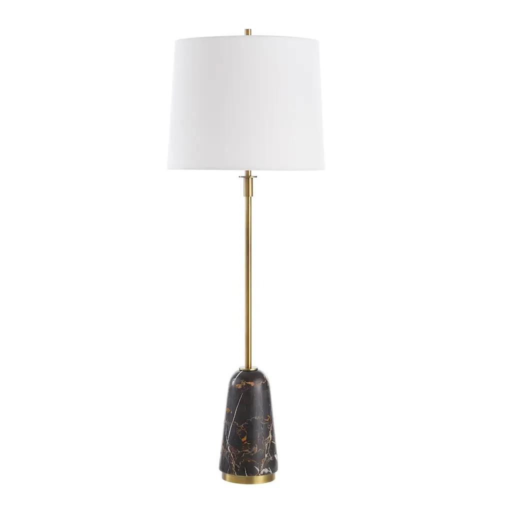 The Roman Buffet Lamp is a masterpiece of elegance and sophistication. It features a striking marble base with exquisite veining that beautifully contrasts with its plated brushed brass accents. The design is completed with a slightly tapered round hardback shade crafted from crisp linen fabric, offering a timeless appeal that enhances any space with its refined aesthetic.