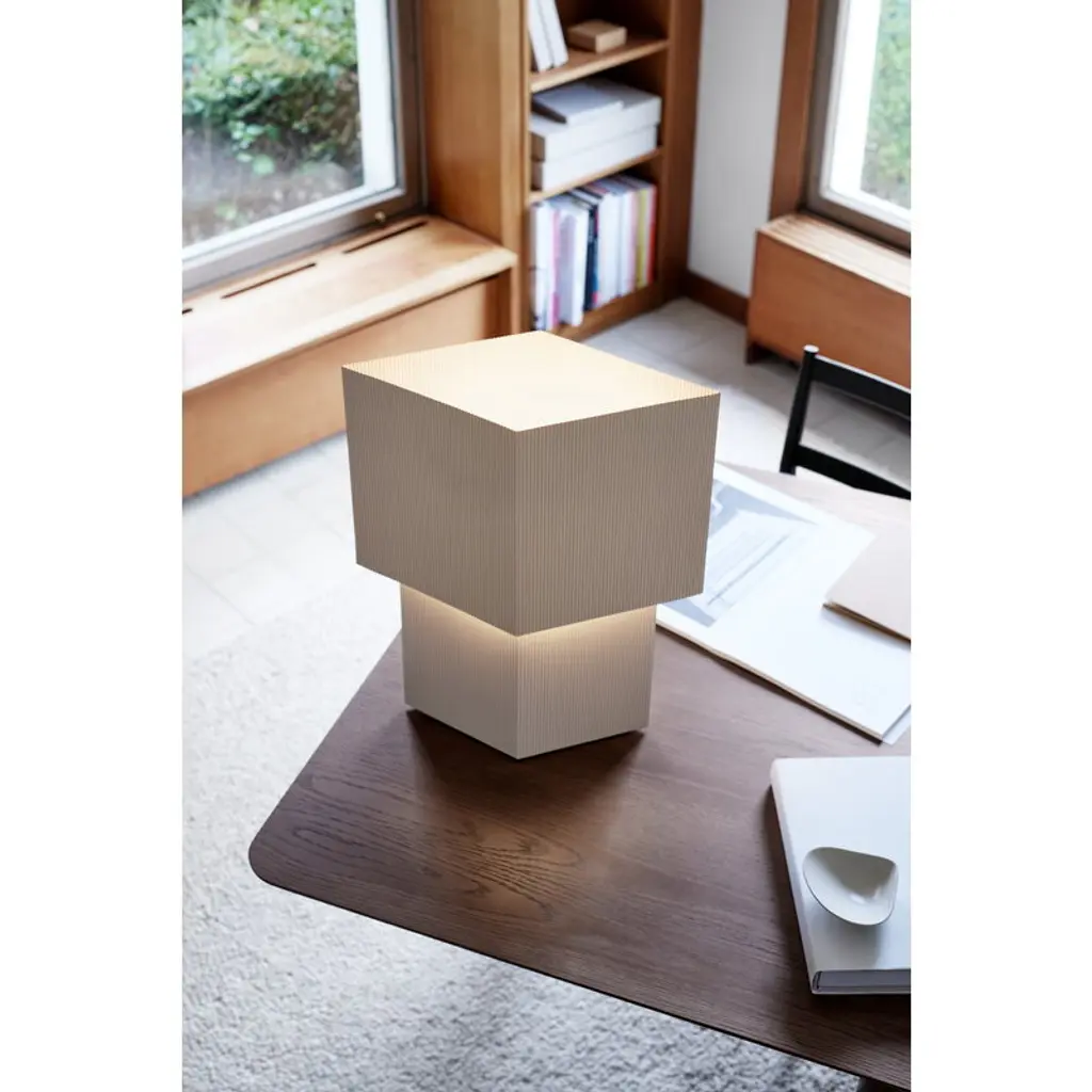 The Romb table lamp by Pholc is dominated by a striking design language that is sure to catch the eye wherever the lamp is placed. However, the luminaire is actually much more detailed than it might look at first glance: its surface is adorned with a delicate, undulating texture that creates an interesting contrast to the preciseness of the lamp’s shape. Designers Mats Broberg and Johan Ridderstråle say they got the idea from corrugated cardboard, which they often use when making architectural models. In geometry, Romb’s quadrilateral shape is called a rhombus, with all four sides measuring the same. The unusual shape gives Romb a striking presence but is, at the same time, a practical solution: the shape makes the luminaire slimmer, so it can fit on even a narrower shelf or windowsill. The lamp emits an indirect glow both from its open top as well as under its shade, the latter emphasizing the luminaire’s fascinating geometry. The strong shape and delicate texture also create a contrast that makes the Romb table lamp almost sculptural – Romb is guaranteed to add a captivating touch to the décor even when the light is turned off.