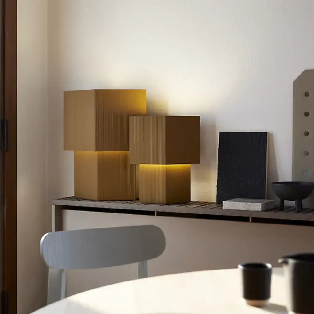 The Romb Table Lamp from Pholc brings playful geometry and sculptural charm to any surface. Designed by Broberg & Ridderstråle, this visually intriguing piece is inspired by the layered look of corrugated cardboard—its rippled metal surface mimicking the lightweight texture with a refined twist. Compact and architectural, the stepped design offers visual interest and ambient lighting, whether placed on a side table, desk, or public space. It comes equipped with a base step dimmer and a 3-way switch for some added functionality.