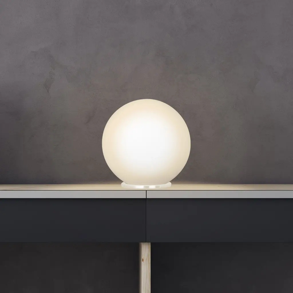 Eglo's Rondo family makes use of chic orbs to illuminate your space. This table lamp is built of steel with white, opal glass shade for contemporary styling of your desk or night stand. With a width of 7.87 inches and a tranquil round glow, this light fits all rooms to add its flair.