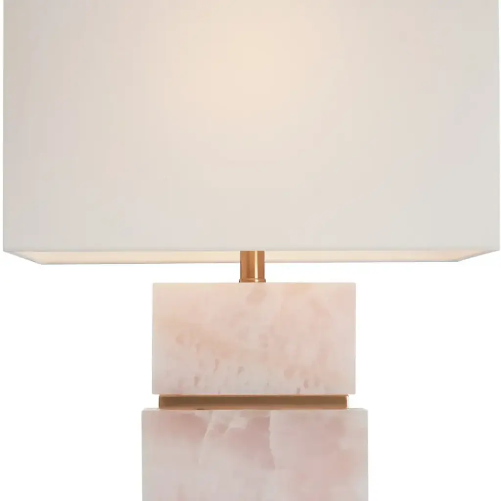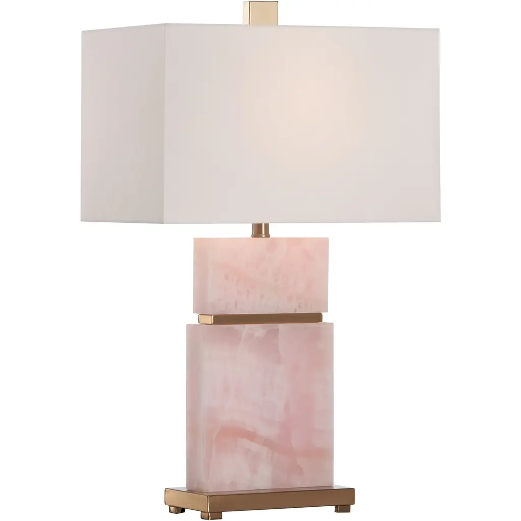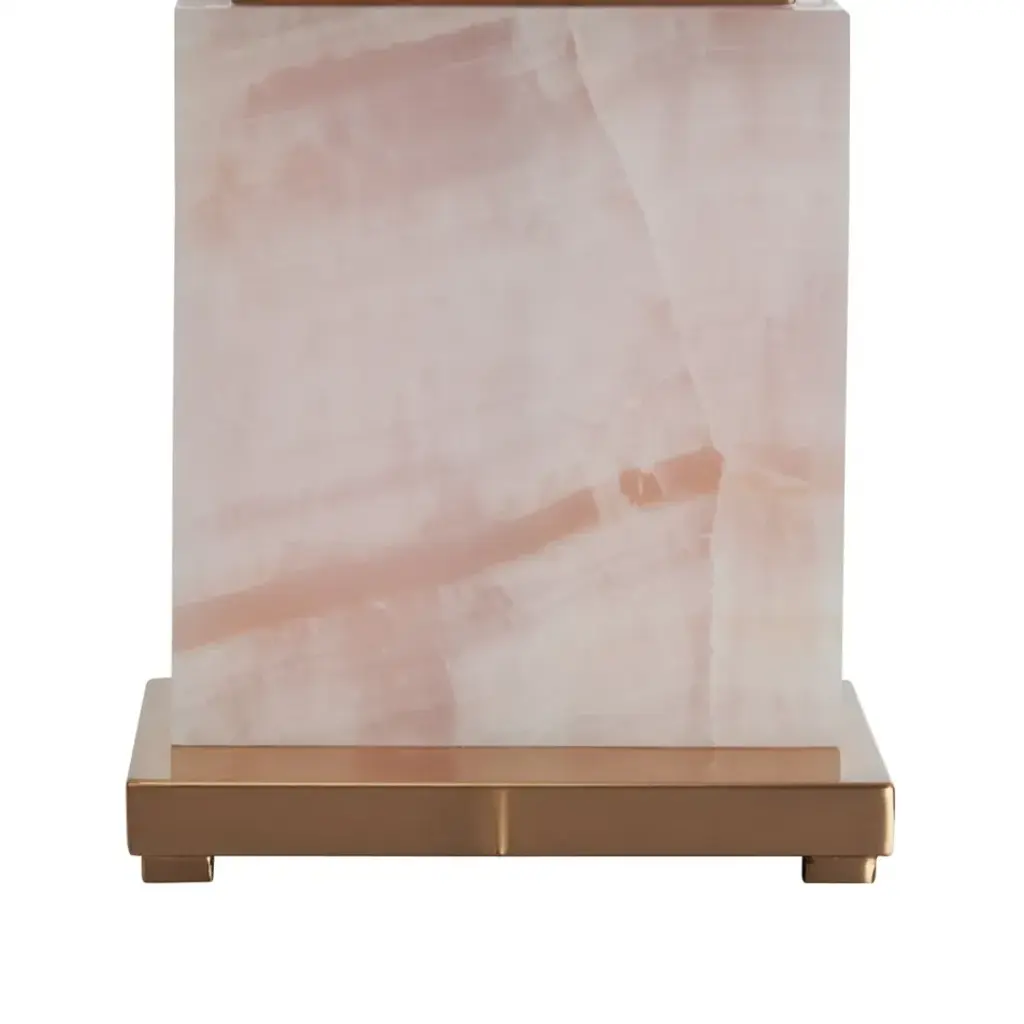 This rose-colored marble lamp features soft, warm tones paired with antique gold accent and base, creating a luxurious and vintage-inspired look. Its elegant design adds a touch of sophistication to any room.
