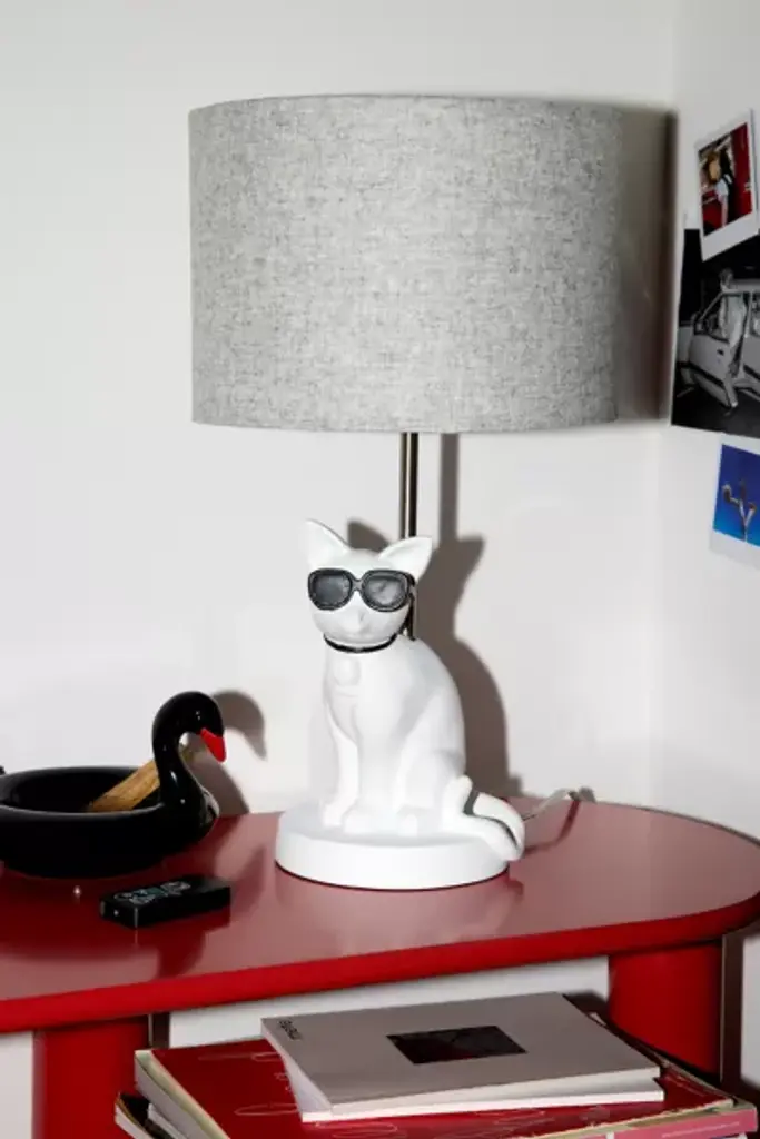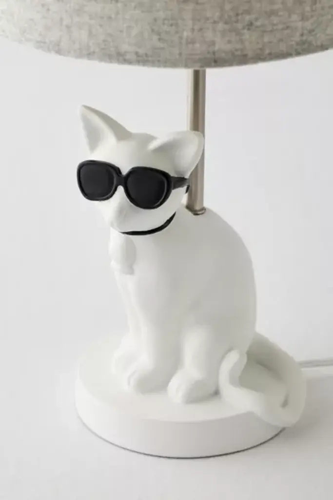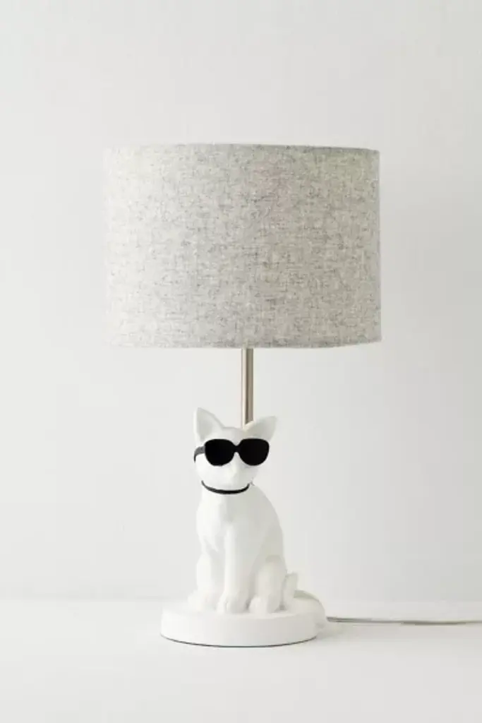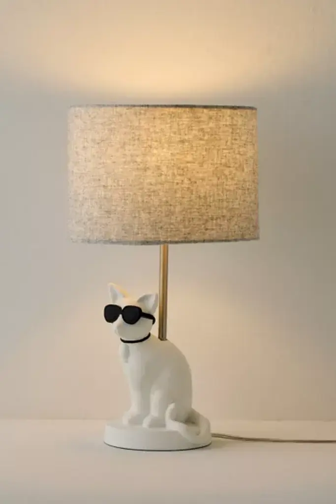 Chill out and create a unique lighting display with this table lamp featuring an animal-shaped base dressed to the nines in oversized sunnies. Complete with a linen drum shade that diffuses a warm glow throughout your space. **Features** \- Rosie Table Lamp \- Sculptural animal-shaped lamp base \- Woven linen drum shade \- Plug in; rotary socket switch \- Requires one Typ A E26 60W bulb - not included **Content + Care** \- 40% Resin, 35% linen, 15% metal, 10% electric \- Wipe clean \- Imported \- Made in compliance with US electrical standards. To use this item outside of the US, pair with an outlet adapter and voltage converter made specifically for use in your location. **Size** Dog \- Wattage/Voltage: 60W/120V \- Overall dimensions: 8.5"l x 8.5"w x 16"h \- Base dimensions: 4.5"l x 4.5"w x 8.5"h \- Shade dimensions: 8.5"dia x 7.25"h \- Cord length: 65" \- Weight: 3 lbs \- Shipping package dimensions: 9.7"l x 9.7"w x 16.7"h \- Shipping package weight: 4.7 lbs Cat \- Wattage/Voltage: 60W/120V \- Overall dimensions: 10"l x 10"w x 18"h \- Base dimensions: 6"dia \- Shade dimensions: 10"dia x 7"h \- Cord length: 65" \- Weight: 3 lbs \- Shipping package dimensions: 11"l x 11"w x 18.6"h \- Shipping package weight: 4.6 lbs