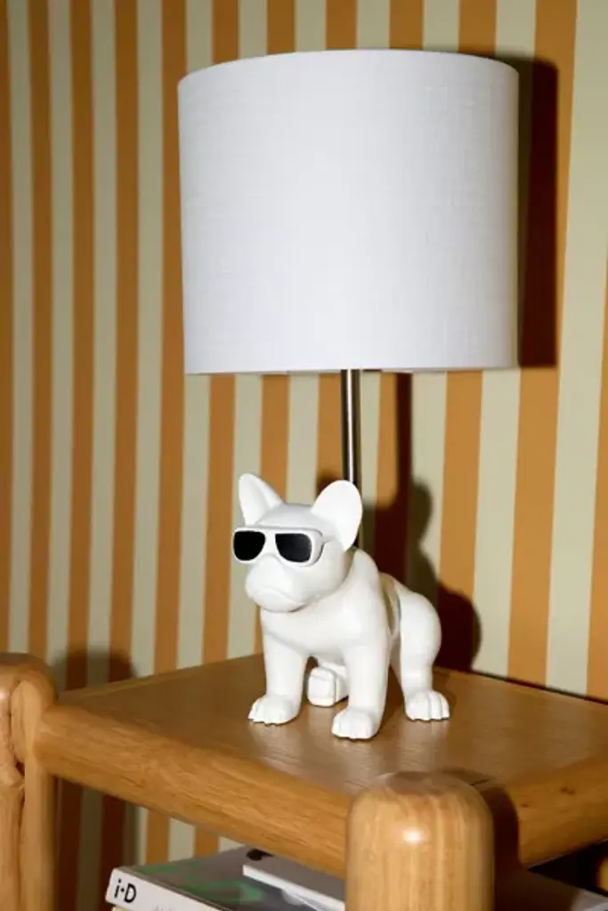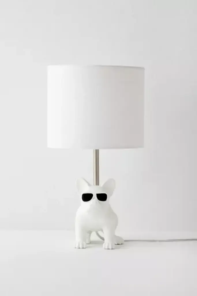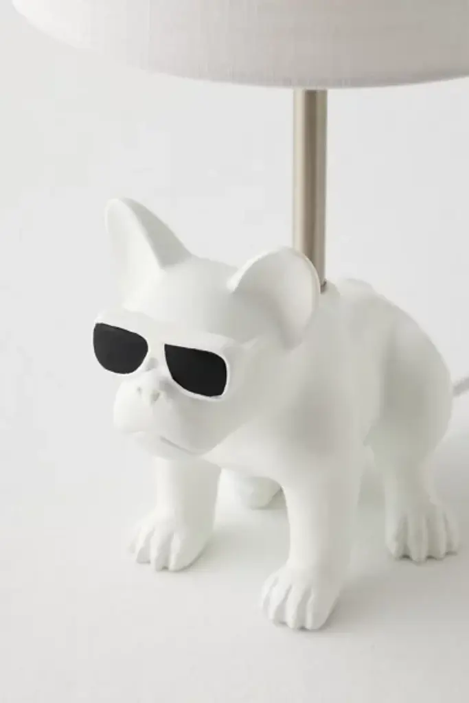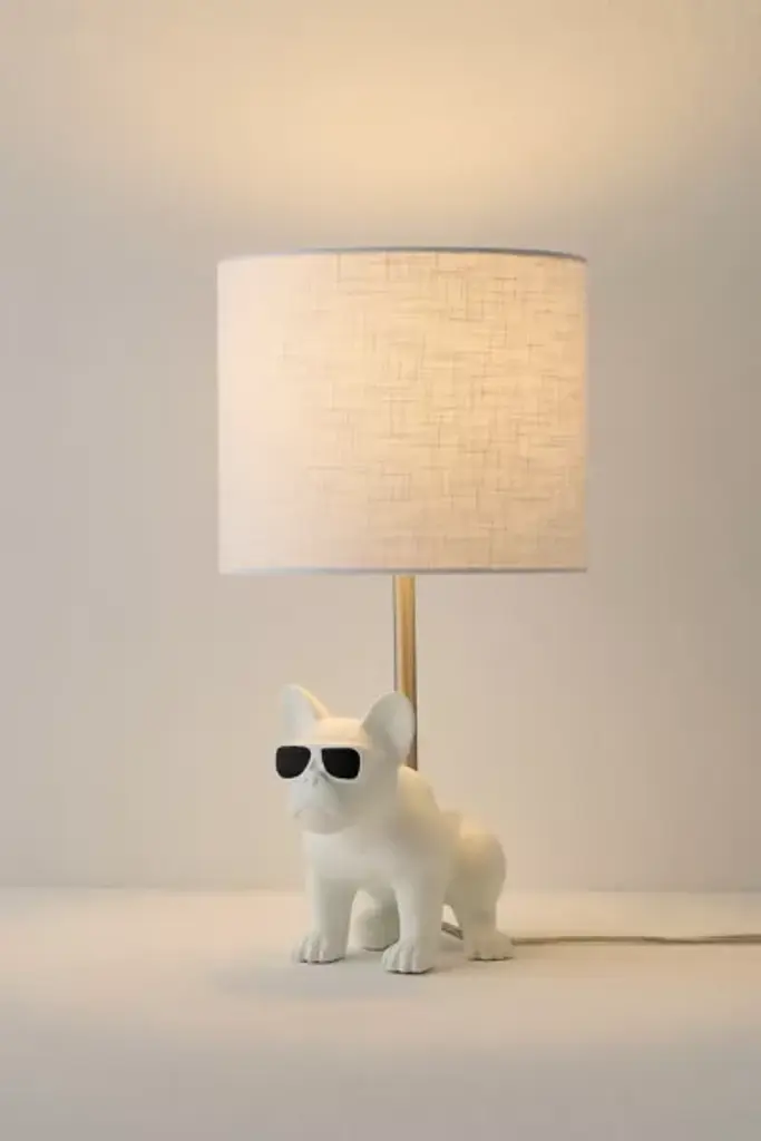 Chill out and create a unique lighting display with this table lamp featuring an animal-shaped base dressed to the nines in oversized sunnies. Complete with a linen drum shade that diffuses a warm glow throughout your space. **Features** \- Rosie Table Lamp \- Sculptural animal-shaped lamp base \- Woven linen drum shade \- Plug in; rotary socket switch \- Requires one Typ A E26 60W bulb - not included **Content + Care** \- 40% Resin, 35% linen, 15% metal, 10% electric \- Wipe clean \- Imported \- Made in compliance with US electrical standards. To use this item outside of the US, pair with an outlet adapter and voltage converter made specifically for use in your location. **Size** Dog \- Wattage/Voltage: 60W/120V \- Overall dimensions: 8.5"l x 8.5"w x 16"h \- Base dimensions: 4.5"l x 4.5"w x 8.5"h \- Shade dimensions: 8.5"dia x 7.25"h \- Cord length: 65" \- Weight: 3 lbs \- Shipping package dimensions: 9.7"l x 9.7"w x 16.7"h \- Shipping package weight: 4.7 lbs Cat \- Wattage/Voltage: 60W/120V \- Overall dimensions: 10"l x 10"w x 18"h \- Base dimensions: 6"dia \- Shade dimensions: 10"dia x 7"h \- Cord length: 65" \- Weight: 3 lbs \- Shipping package dimensions: 11"l x 11"w x 18.6"h \- Shipping package weight: 4.6 lbs