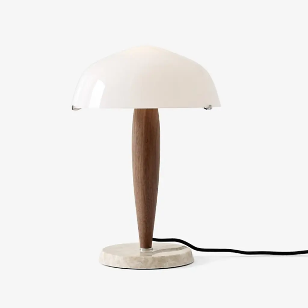 Elegant yet organic, the Rospo table lamp has a profile that makes a statement wherever you set it. Natural birch wood or a gloss painted finish add a touch of luxe, while the opal glass casts a soft glow. Use the in-line dimmer switch to create just the right ambience.