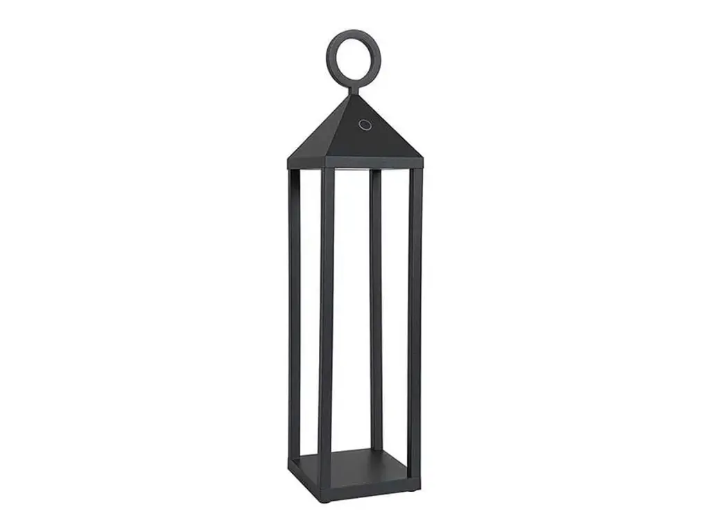 PIC-NIC is a LED table lamp (2700K), portable and rechargeable, perfect for terraces and gardens and why not for cheer up your pic-nic at the park. The wireless lamp following you wherever you go. Die-cast aluminium body with pretreatment finishing for outdoor (protection grade IP54). Touch switch, charges through a USB cable, battery life 12 hours. Available in three finishes (white, anthracite, corten) and two heights. Available suspension rope in ecru finishing (5 mt) to be ordered as accessory.PIN001 - PIN002 - PIN003: LED 2,2W - 2700K - IP54