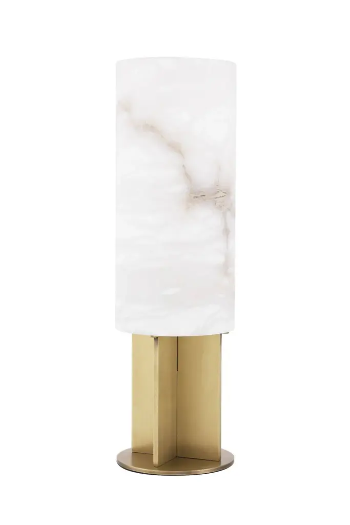 The unconventional style of Table Lamp Giorgina will bring an edgy look to contemporary interiors. It features a simple geometric base with an antique brass finish and a cylindrical alabaster shade. The ideal table lamp for ambient lighting in your lounge, bedroom or hallway.