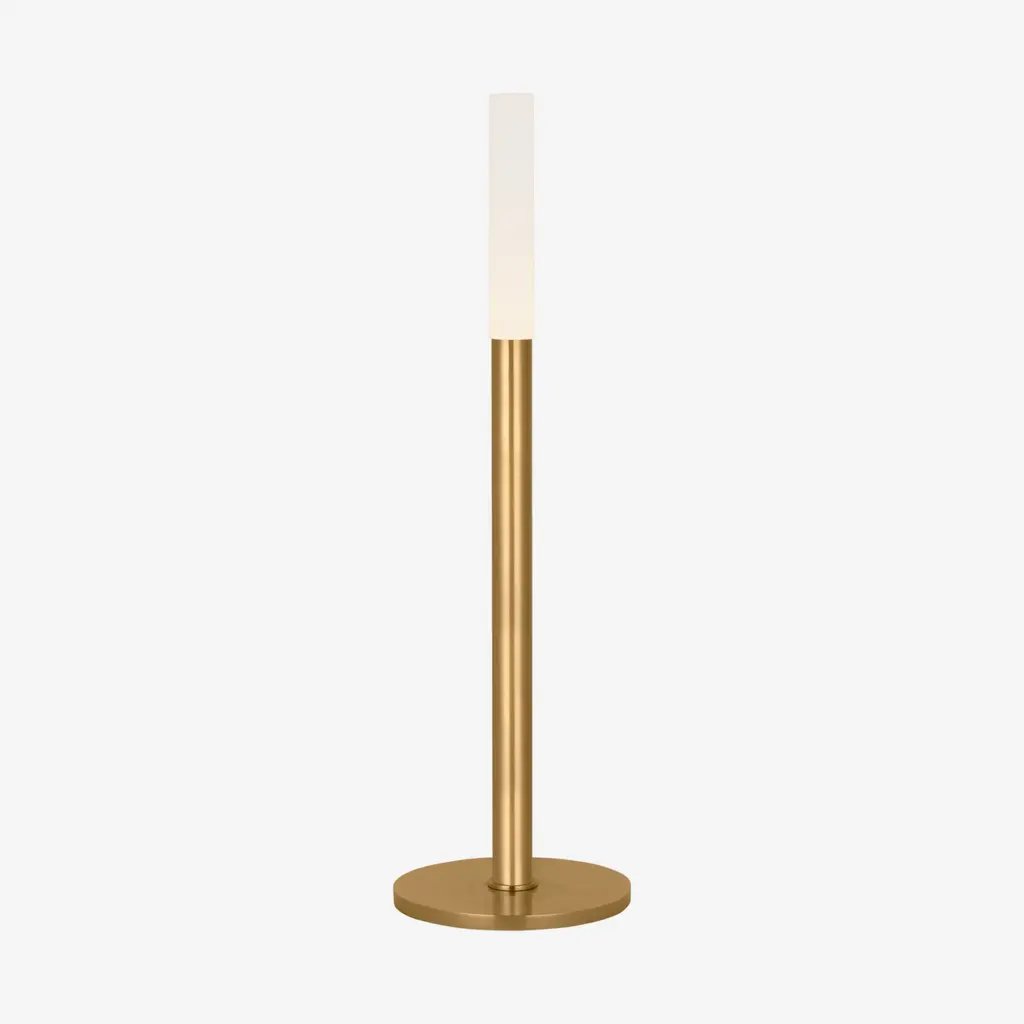 The Rousseau LED Table Lamp from Visual Comfort Signature brings contemporary elegance to any space it adorns. Crafted from premium brass with a sleek glass shade, this fixture adds a touch of modern sophistication to any room. Designed by Kelly Wearstler, its clean lines and luxurious materials create a statement piece for your ceiling. Illuminate your space with style and ambiance, which showcases Wearstler's iconic aesthetic and impeccable craftsmanship.