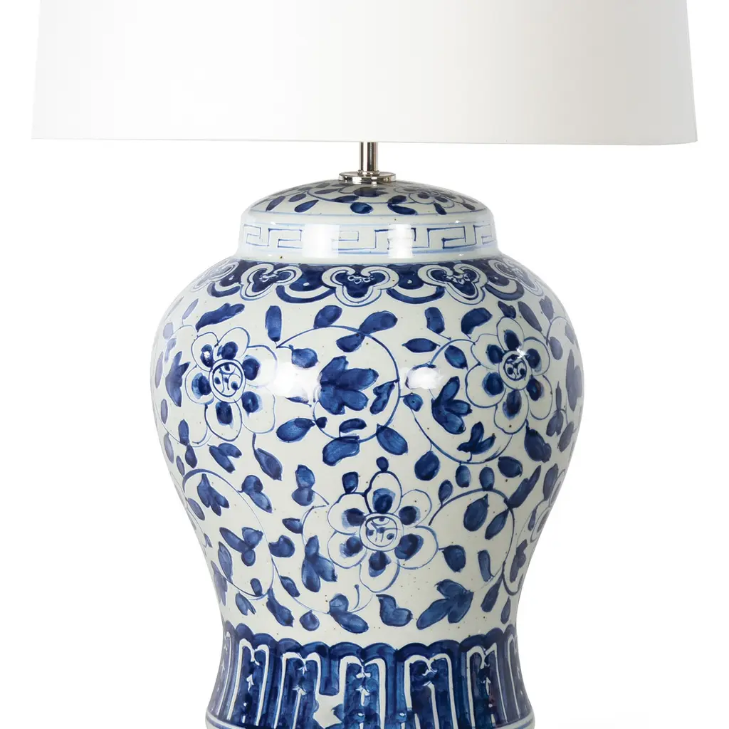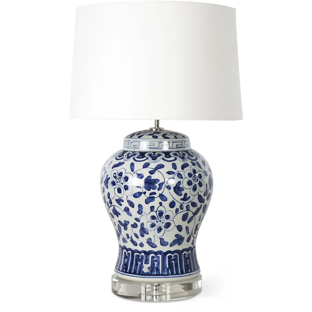 Classic and luxurious, the Royal Ceramic Table Lamp is a beautiful and timeless design that is sure to add a touch of elegance to your home. Inspired by traditional Chinese vases, this lamp features a stunning blue floral design that is both eye-catching and stylish. Accented by a crystal base, this piece will truly shine in any room you style it in.