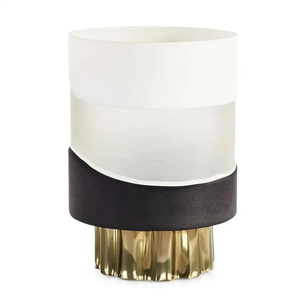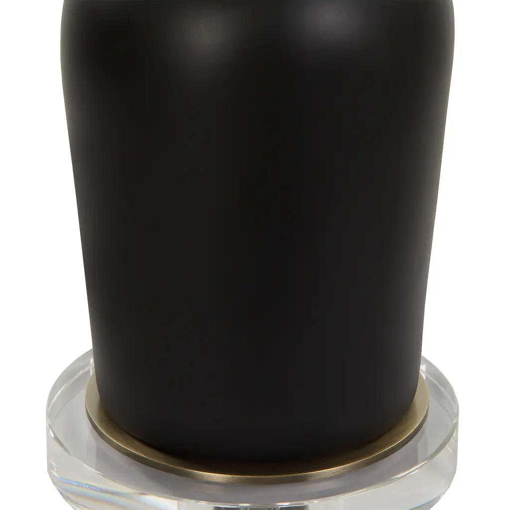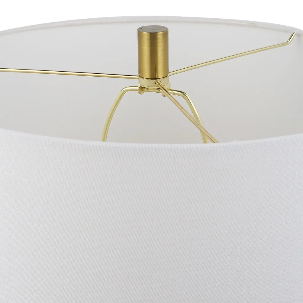This beautiful royal blue ceramic table lamp, accented in antique gold, sits atop a metal base. A thin metal band softens the wide cylinder body. A round hardback white linen shade completes the look and makes this a perfect lamp for a nightstand or on an end table in a family room. Features: Set includes: One (1) table lamp Material(s): Ceramic, Metal, Fabric Royal blue glaze with antique gold accents Drum hardback shade Dimensions: Overall dimensions: 15 inches wide x 26.25 inches high x 15 inches deep Item weight: 6.6 lbs This product will ship to you in one (1) box.WARNING: This product can expose you to chemicals including nickel which is known to the State of California to cause cancer. For more information, go to www.P65Warnings.ca.gov/furniture.