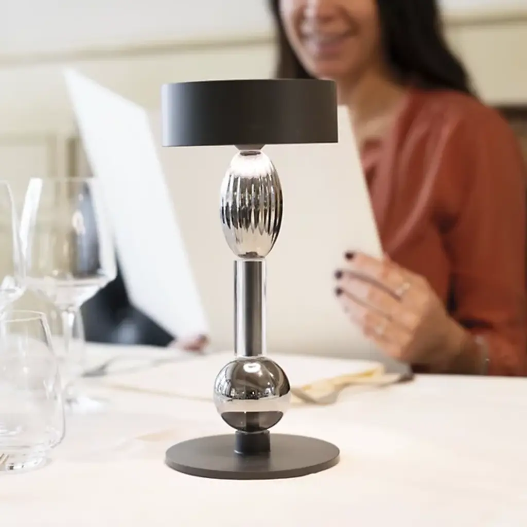 The Royal Family Wi-Fi Rechargeable LED Table Lamp from Zafferano America combines elegance and innovation in one luminous piece. Its painted aluminum frame, hand-blown borosilicate glass, and prismatic diffuser create soft, atmospheric light. Designed by Lucchesedesign, it features touch controls and Wi-Fi app connectivity, allowing it to adjust brightness and switch between four color temperatures to suit any mood. Rechargeable and long-lasting, it offers up to 36 hours of light on a single charge. Perfect for homes or professional spaces, it combines sophisticated style with modern convenience.