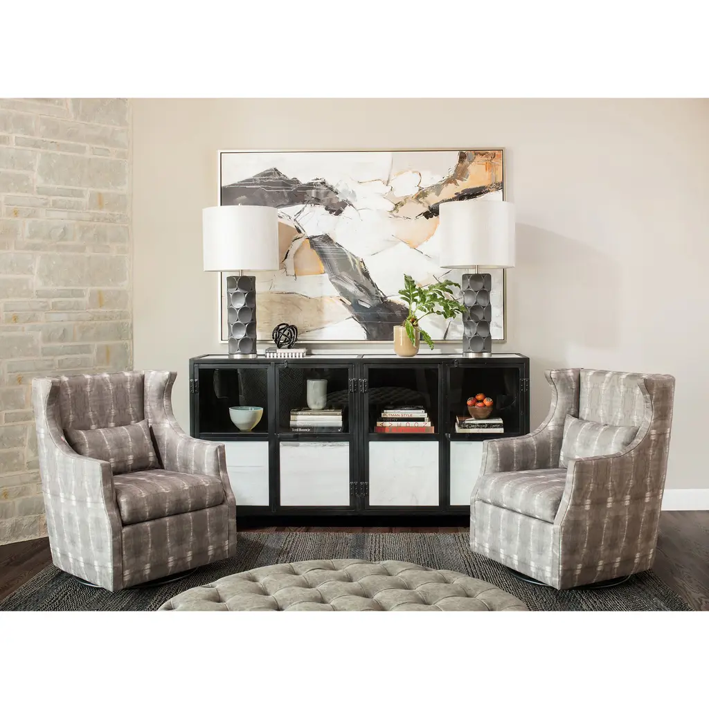 Rutherford Table Lamp - Charcoal Finish On Ceramic Body With Metal Base - Hardback Linen Shade