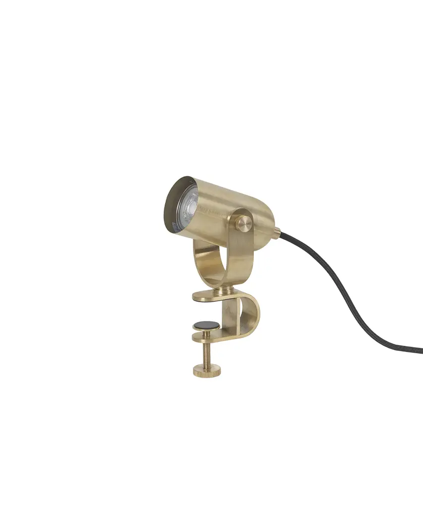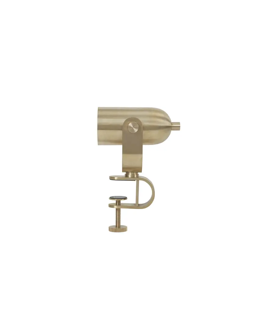 Inspired by industrial architecture and engineering, the practical and durable Ruuvi Lamp has a clean yet soft expression. Featuring practical thumb grip screws that have also inspired its name, the shade of the Ruuvi Lamp can be adjusted to provide light in any direction, while the clamp system allows the lamp itself to be attached to any surface in the home. Use the functional lamp to light up your beloved shelving system, for illuminating the pages of your favorite book while reading in bed, as a bright light when preparing delicious meals in the kitchen, or in any other space where you need a practical light source that can easily be moved and adjusted. Designed and produced by the Copenhagen-based studio Ferm Living.