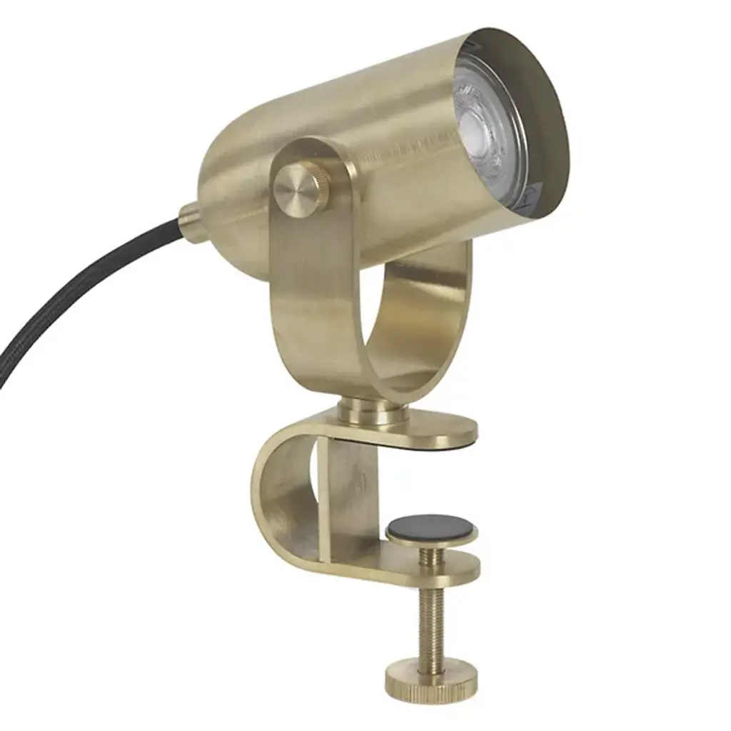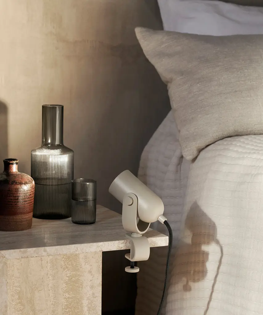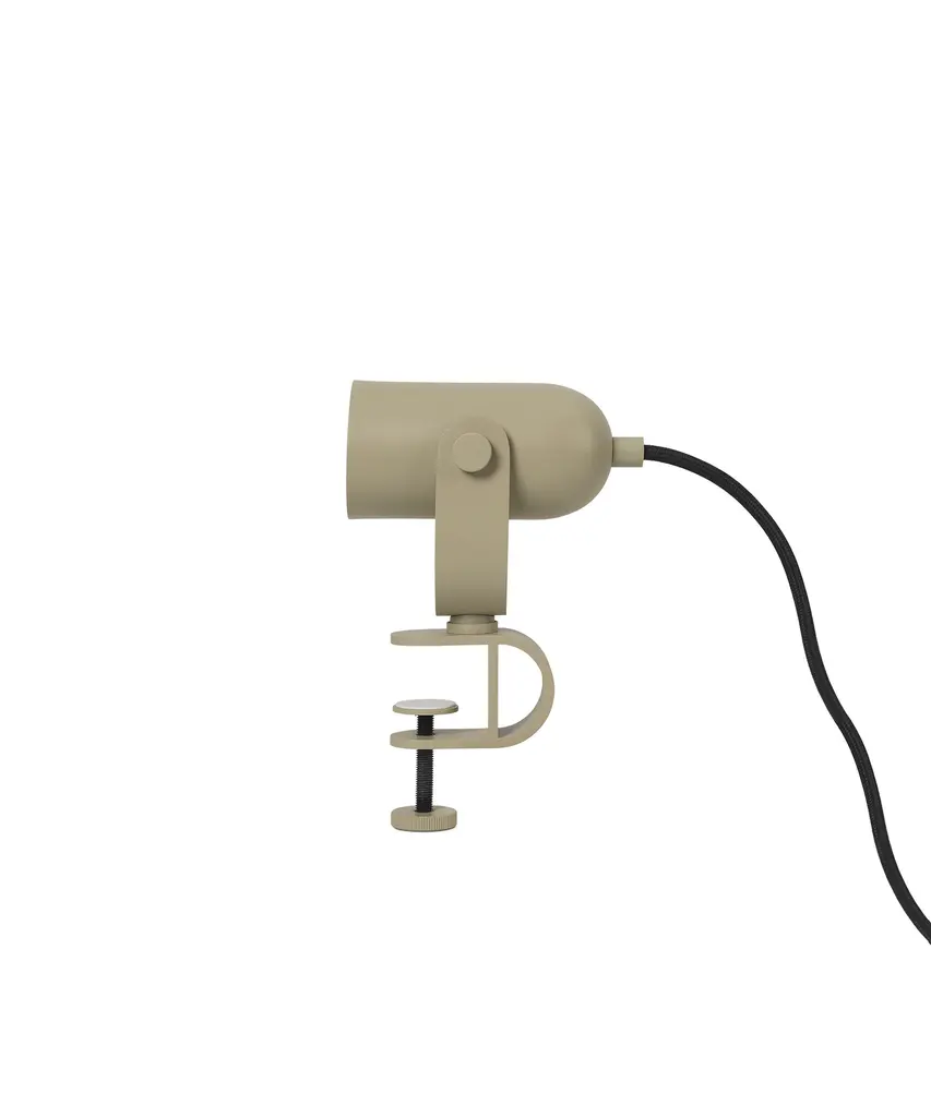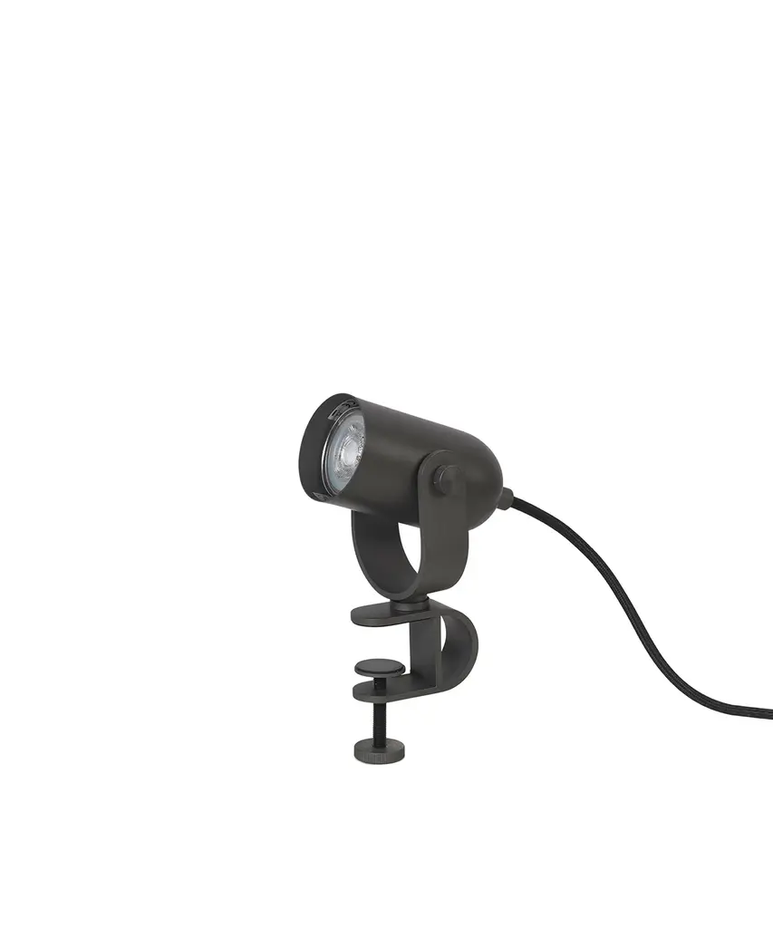 Inspired by industrial architecture and engineering, the practical and durable Ruuvi Lamp has a clean yet soft expression. Featuring practical thumb grip screws that have also inspired its name, the shade of the Ruuvi Lamp can be adjusted to provide light in any direction, while the clamp system allows the lamp itself to be attached to any surface in the home. Use the functional lamp to light up your beloved shelving system, for illuminating the pages of your favorite book while reading in bed, as a bright light when preparing delicious meals in the kitchen, or in any other space where you need a practical light source that can easily be moved and adjusted. Designed and produced by the Copenhagen-based studio Ferm Living.