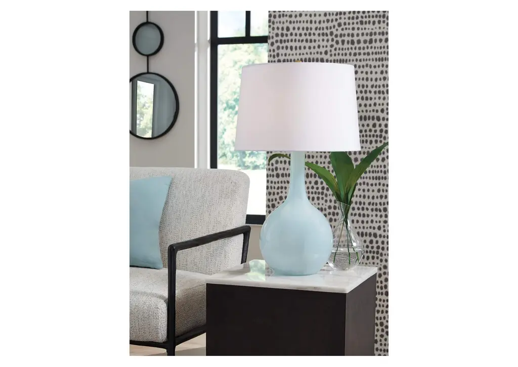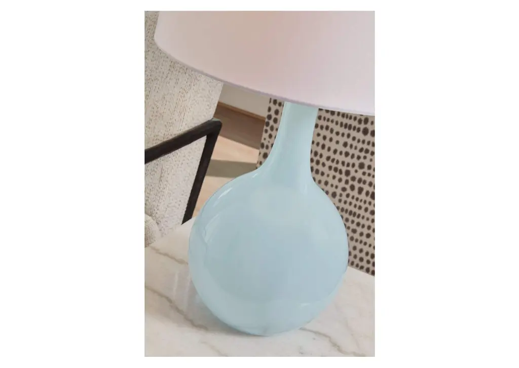 More than mere lighting, the spectacular Rylanton table lamp illuminates your good taste. Its elegant silhouette, crafted from aqua blue glass, is contemporary artistry at its finest. No two lamps will be quite alike. Weight 9.000 lbs. (4.05kgs.)