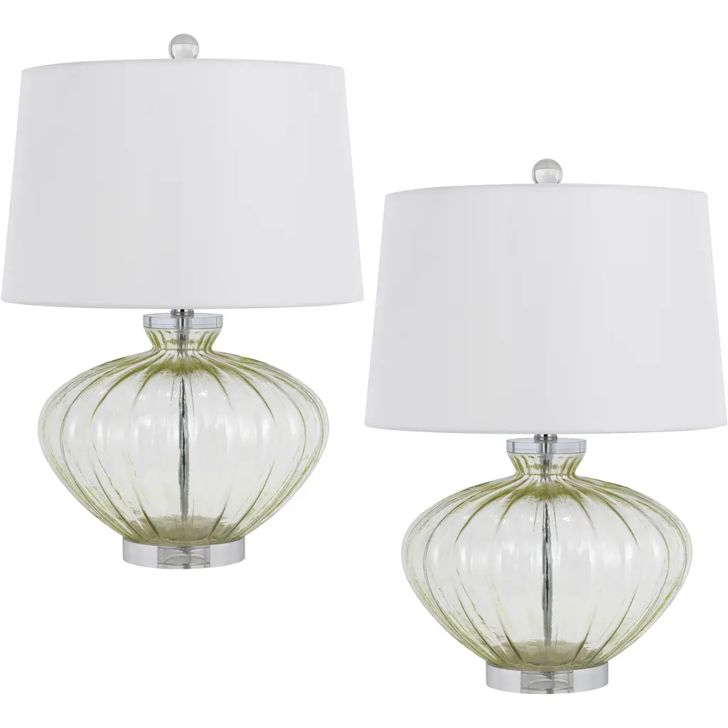 Crafted with curvy bases and cotton shades, these glass table lamps have cool, contemporary appeal.