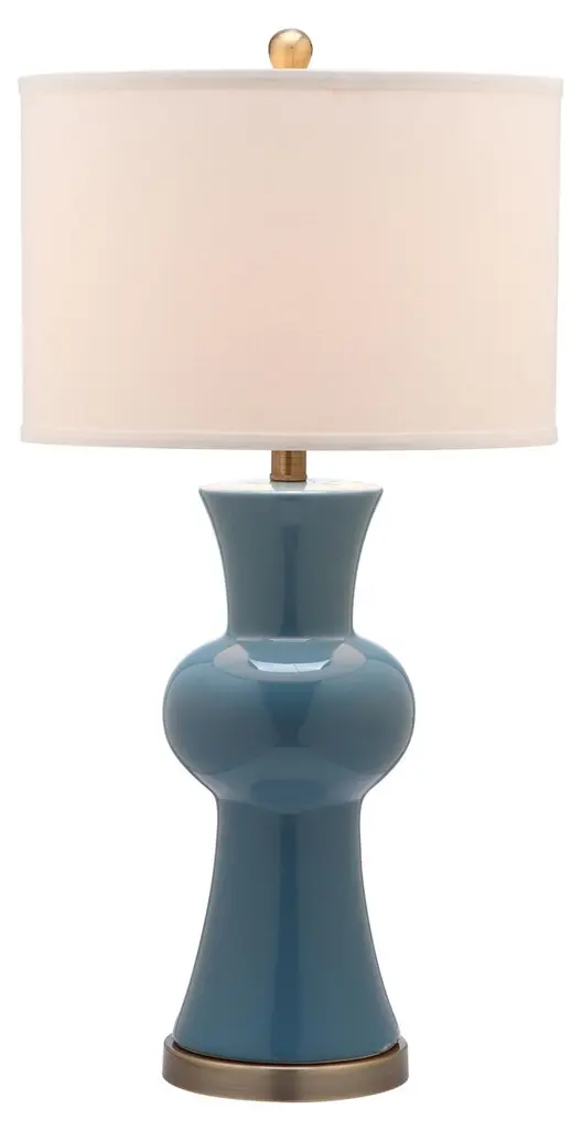 A contemporary twist to the classic column lamp, this pair will work well in any modern room. Crafted of ceramic with a blue finish.