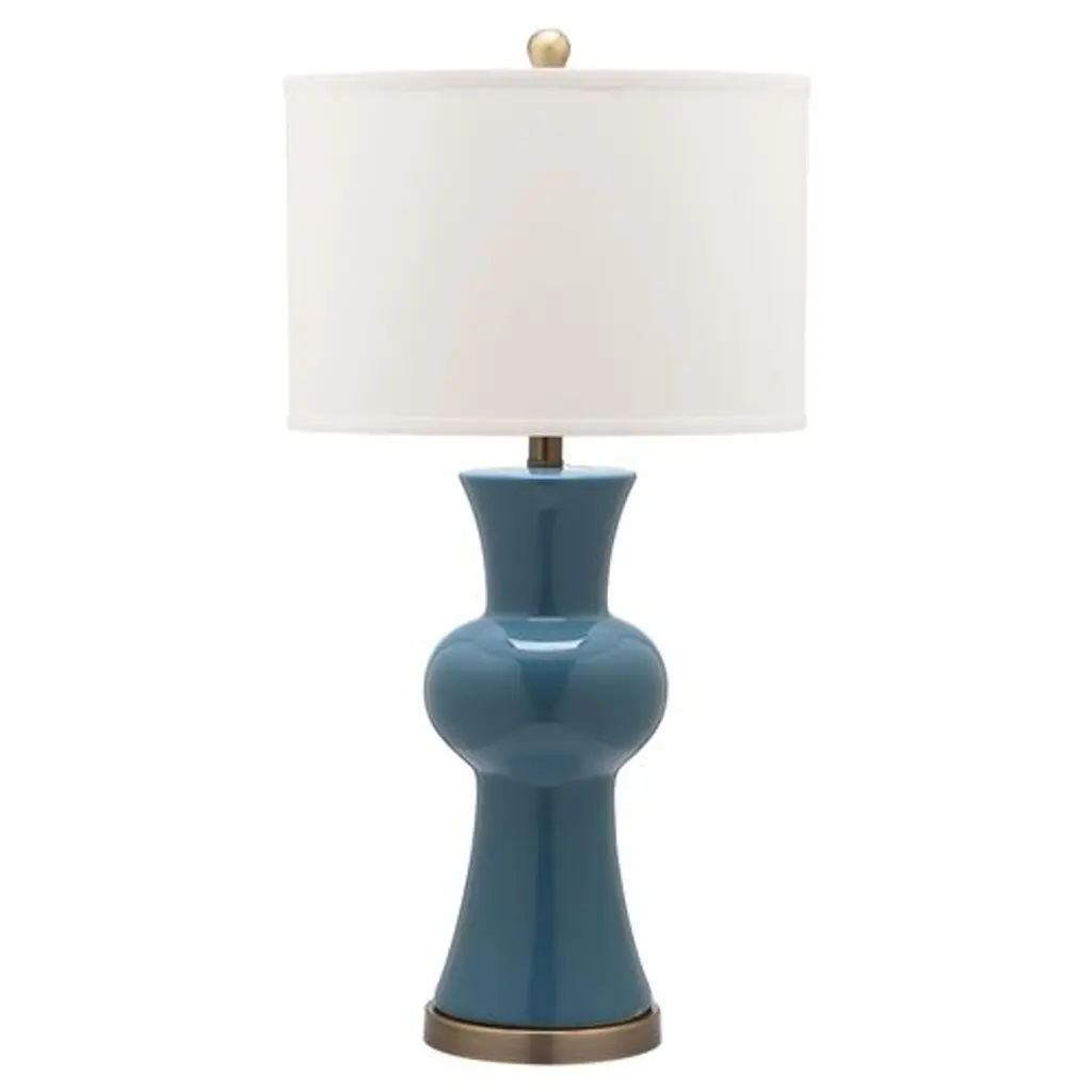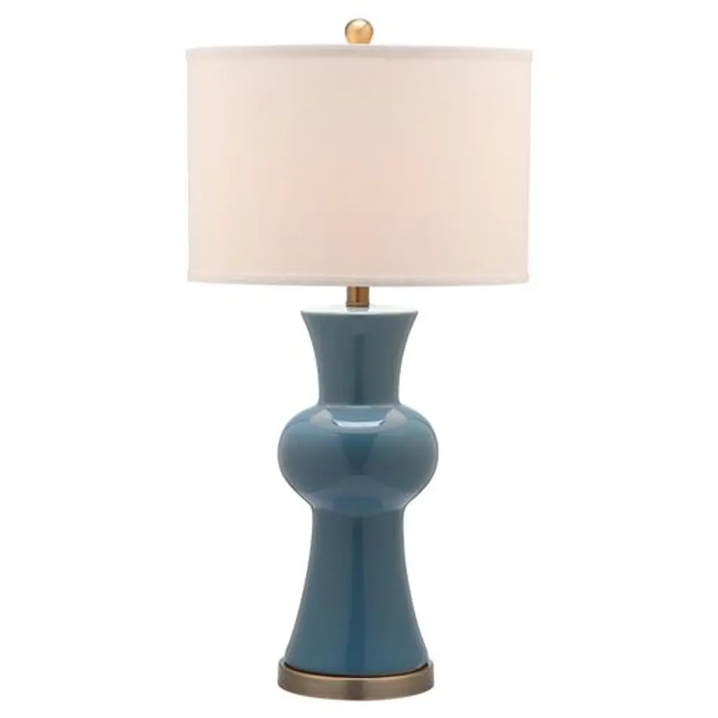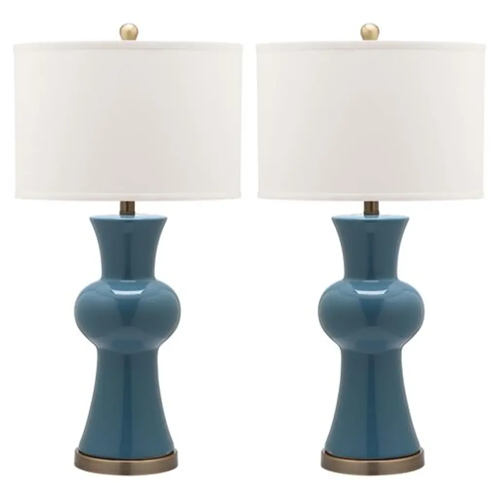 A contemporary twist to the classic column lamp, this pair will work well in any modern room. Crafted of ceramic with a blue finish.