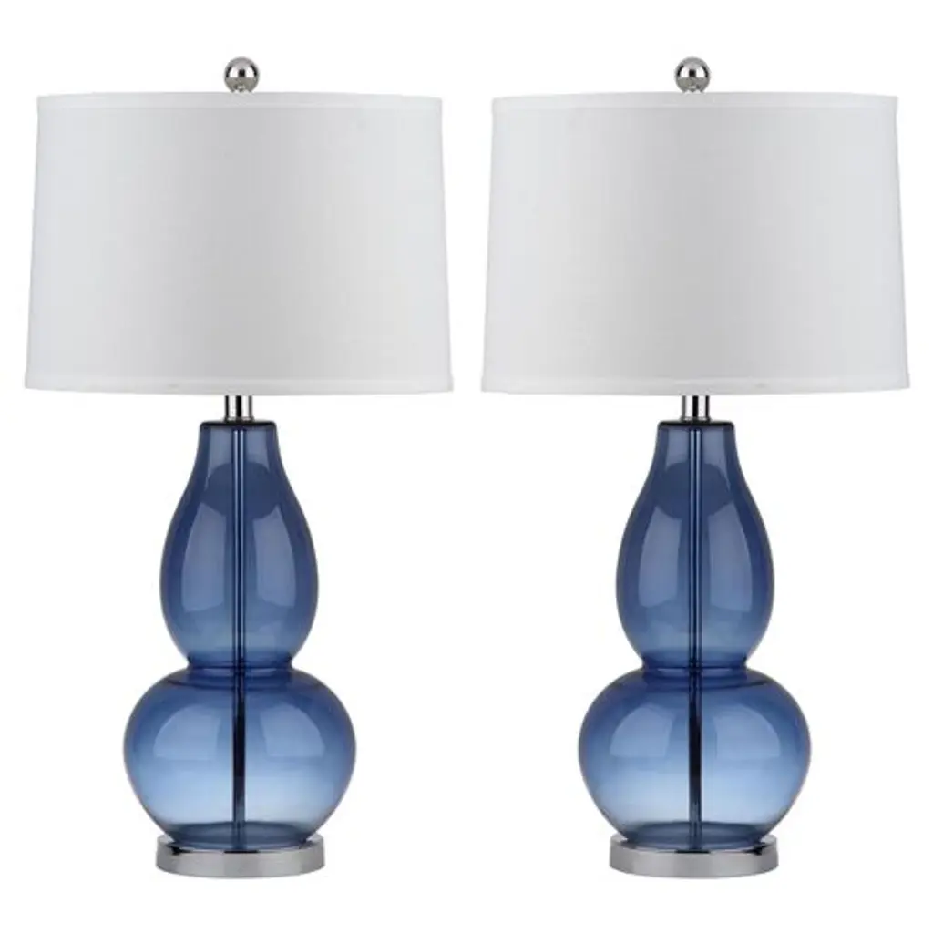 S/2 S/2 Adele Gourd Table Lamps, Deep Blue Glass