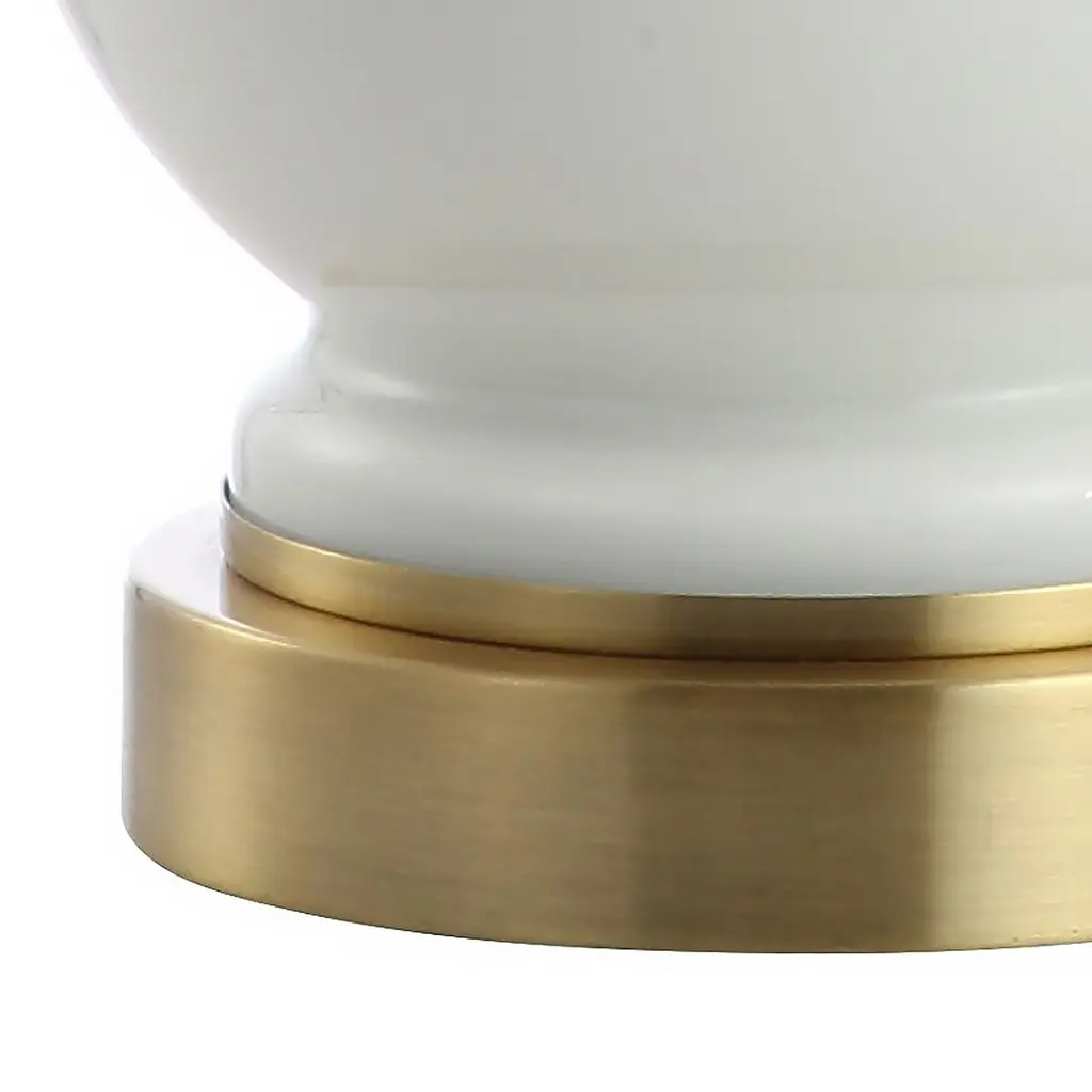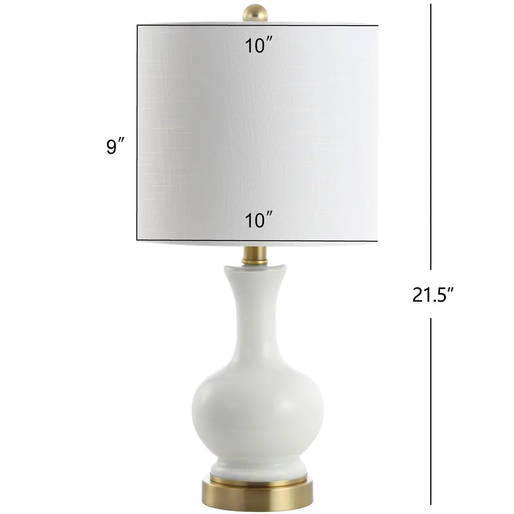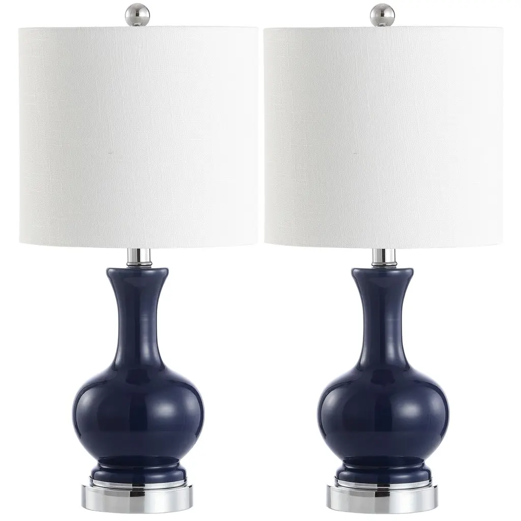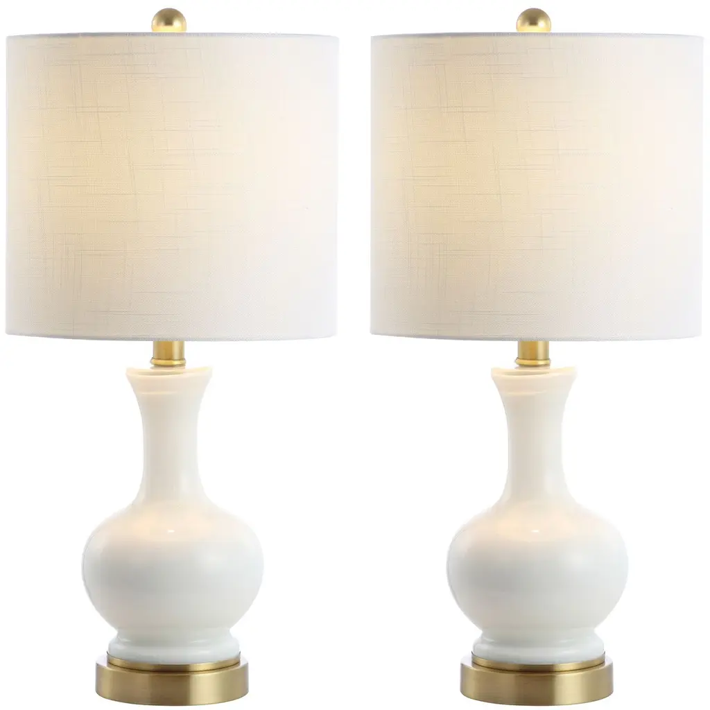 This pair of table lamps show that it is possible to improve upon a classic. Here, the glass vase-shape body sits atop a substantial metal base whose glimmer complements the glossy finish of the glass. The linen shade and the silk-wrapped cord reinforce the overall elegance.