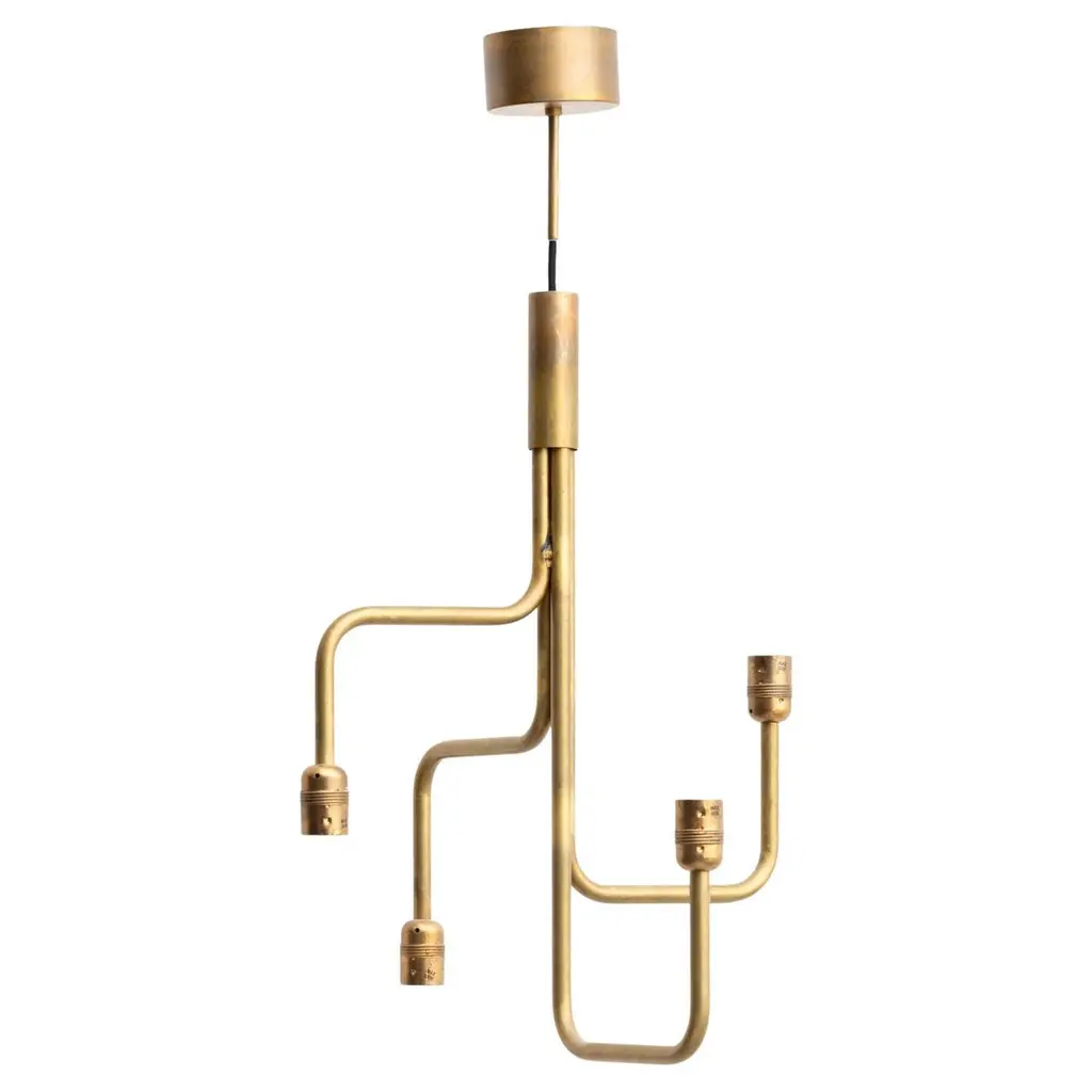 Ceiling lamp designed by Sabina Grubbeson manufactured by Konsthantverk Tyringe in Sweden.Strapatz ceiling smallMeasures: D 450 mmH 600 mm, cord 3 mMax 4 x 60 W E273414-6 raw brassThe lamps are wiring with standard Europe wiring.This lamp is wired for Europe, if used in US or any other country the client will need to convert it.Strapatz pendant designed by Sabina Grubbeson is raw and basic. It is a modern and industrial take on Classic chandelier and its large size makes it ideal as a substitute in a large dining room or hall. Konsthantverk Tyringe is a family-run company in South of Sweden, that has been manufacturing lamps for almost a hundred years.