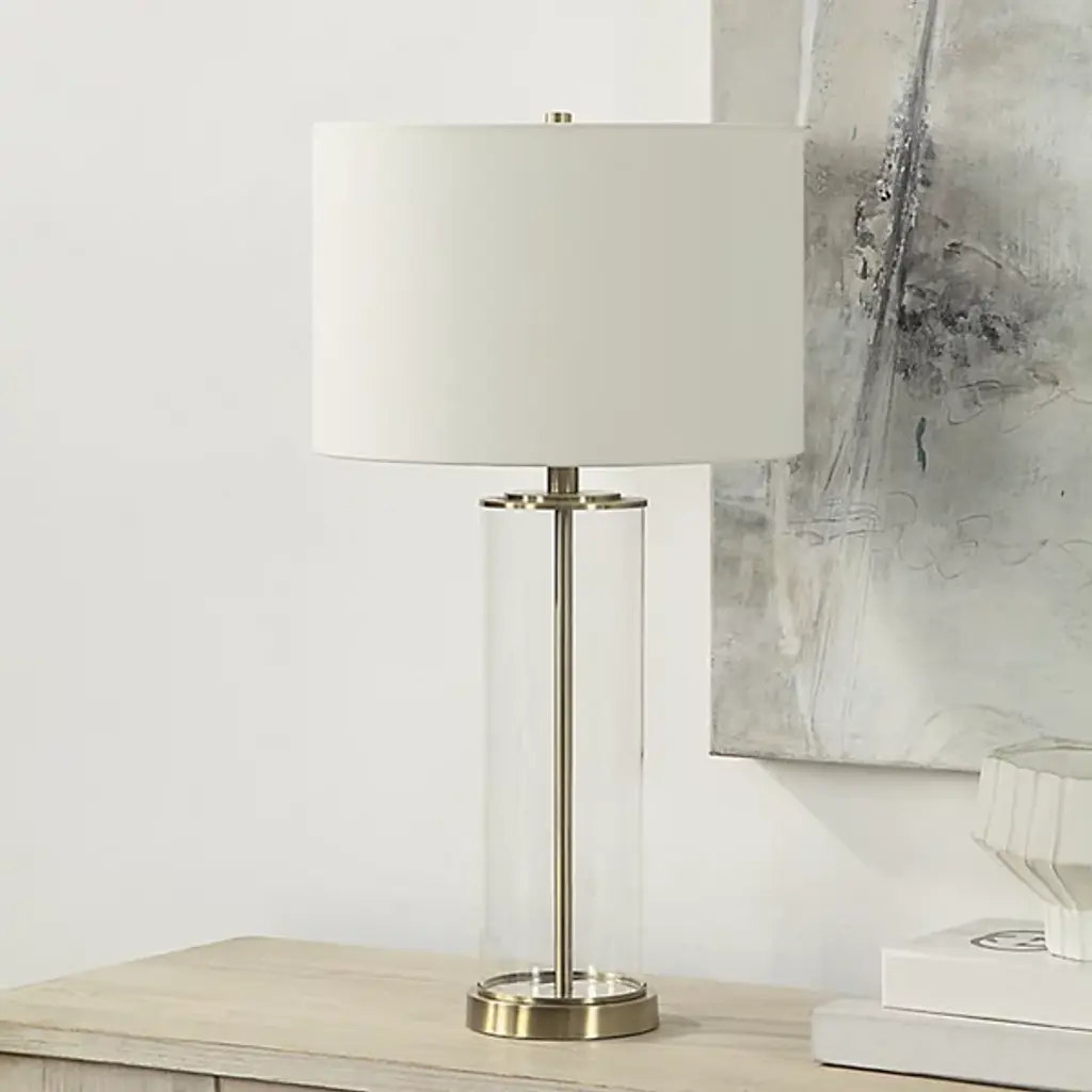 The Saco Table Lamp from Renwil elevates any room with its sophisticated design. Featuring a sleek satin brass glass body, this lamp combines modern aesthetics with timeless appeal. Its drum-shaped cream linen shade adds a classic touch, softening the light for a warm ambiance. The Saco Table Lamp's versatile style complements various decor schemes, from contemporary to traditional. With its polished look and balanced proportions, this lamp is a functional light source and an elegant decorative accent for your space.