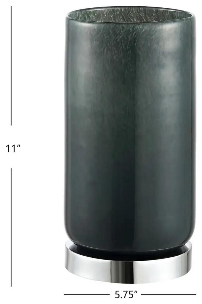 The seductive glow of this edgy contemporary table lamp updates any living room with its modern spin on minimalist style. Sculpted with shimmering glass and a polished chrome foundation, designers love the luxurious pattern created by its rich grey hue.