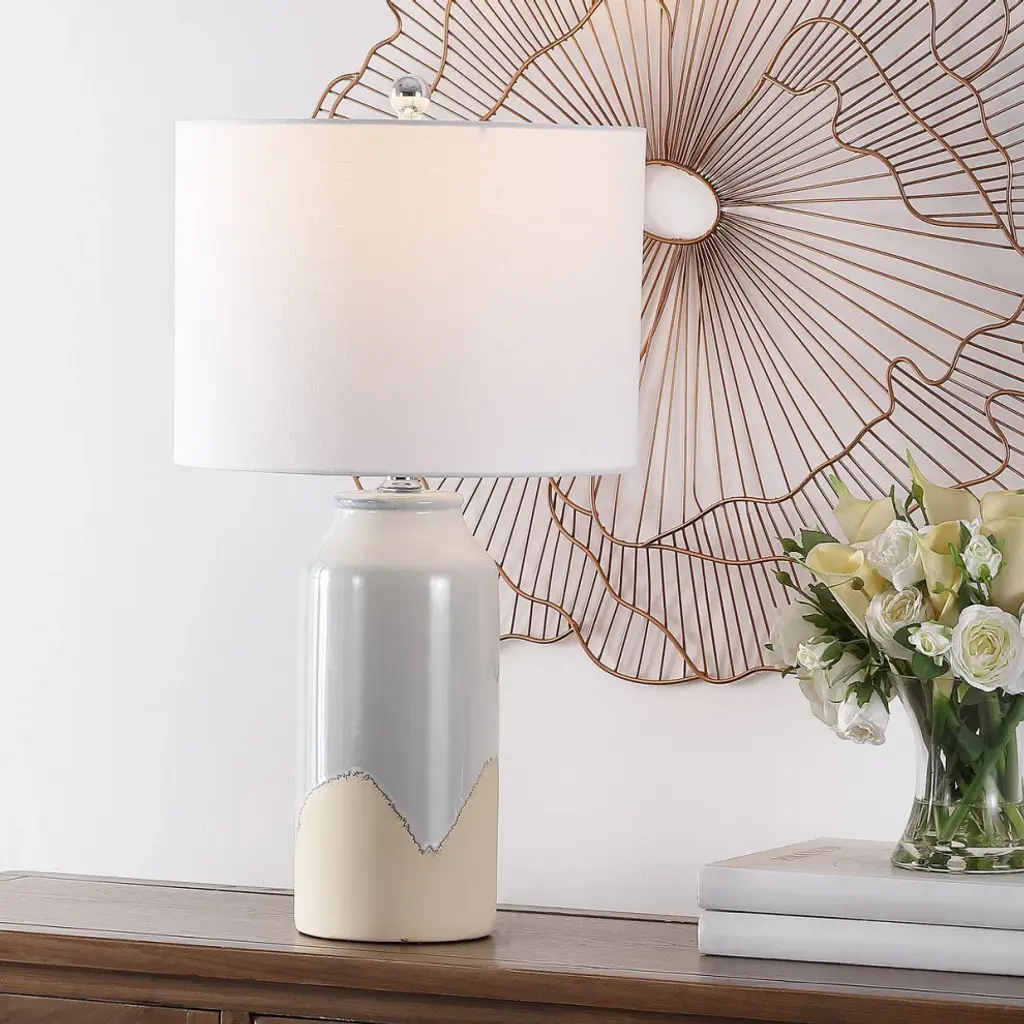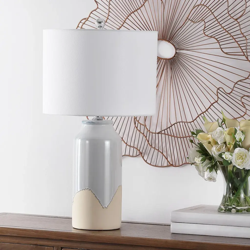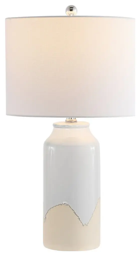 A fashion-forward statement for clean contemporary decor, this Bevlen Table Lamp is an eye-catching essential. Bevlen''s artistic pairing of a glossy white finish with a matte clay bottom creates a captivating accent piece perfect for any room''s color scheme.Lamp Certified: ULType of bulb included: LED A19 9WNumber of bulb(s) included: 1Max Wattage :100Light Bulb Base Type: E26 Screw Terminal