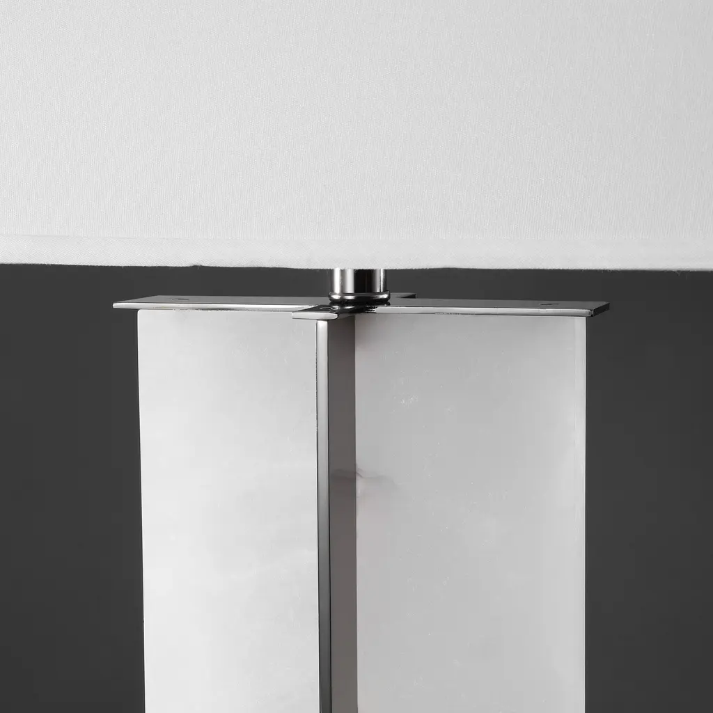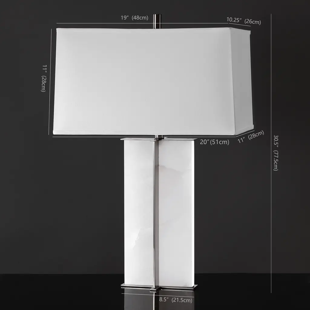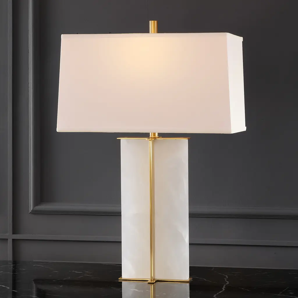 Grace your tabletop with the elegance and charm of our Natalee table lamp. Clean lines and sleek proportions accentuate the graceful stature of our table lamp. Its white marble base is elevated with a gleaming gold accent for a polished and sophisticated look. Completed with a white tapered shade, our table lamp serves as a modern and versatile addition. It filters a warm and soft glow to add timeless glamor to your nightstand, console, or side table.