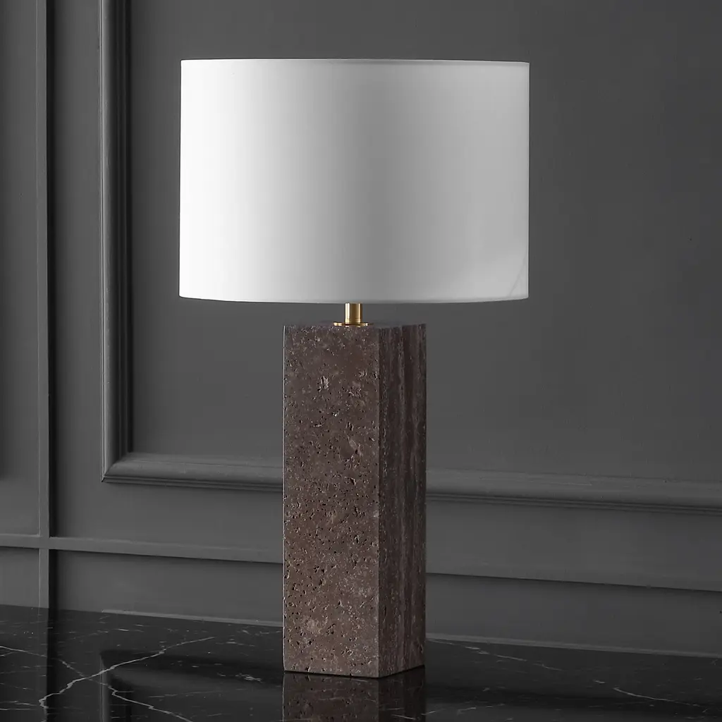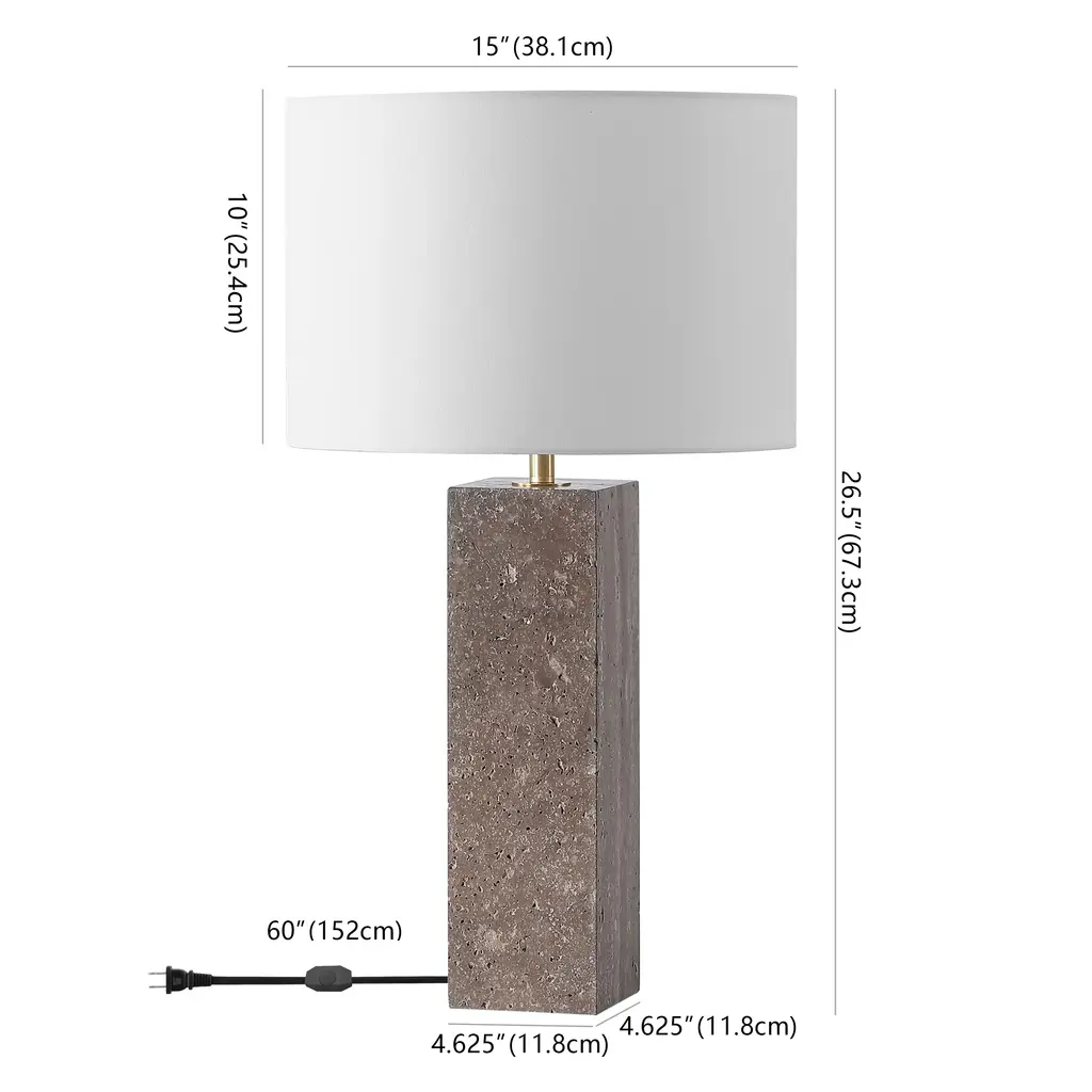 Illuminate your space with the stunning touch of the Feliciano Travertine Table Lamp. A striking blend of modern aesthetics and timeless elegance, this lamp radiantly showcases a dual color theme of dark brown and pure white. The sturdy iron base, artfully molded in a dark brown finish, lends an alluring contrast to the substantial travertine that proudly adorns the lamp. The travertine, a natural testament to earth's beauty, is an awe-inspiring highlight that instantly elevates the overall appearance of the lamp. It summons a warm, earthy feel to your interior design, adding instantly to the ambience of any room. Completed with a classic white linen shade, the Feliciano lamp emits a soft, warm glow - a perfect addition for creating a cozy atmosphere in your living room, home office, or bedroom. In terms of functionality, the lamp boasts a dimmer switch, allowing you to choose the brightness to suit your mood or task. Whether you want a soft glow for a romantic evening or a bright light for intense work hours, this convenient feature can cater to your every need. Invest in the Feliciano Travertine Table lamp for a fusion of fashion and flexibility. With its aesthetic appeal and versatile lighting options, it offers more than just illumination - it provides an authentic touch of elegance to your home decor.