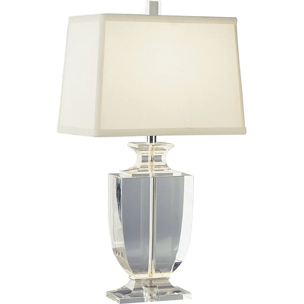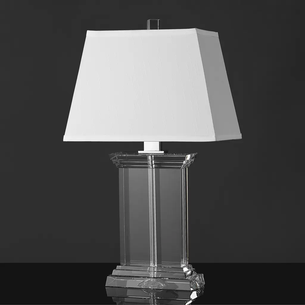 Embracing its Old Hollywood inspirations, this Schmidt Table Lamp is an absolute showstopper. Schmidt's handmade crystal base flaunts fluted details that dare you to look away, and a tapered square shade further enhances its sense of depth and motion.