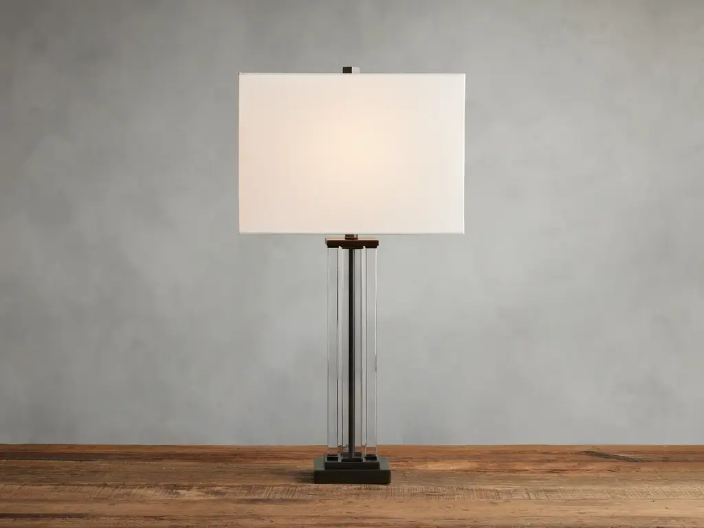 Art Deco redefined for today's contemporary interiors, this handmade Maddock Table Lamp is absolutely spellbinding. Maddock's statuesque crystal body and finial are given a hint of industrial chic with a gold plinth base and matching decorative hardware.
