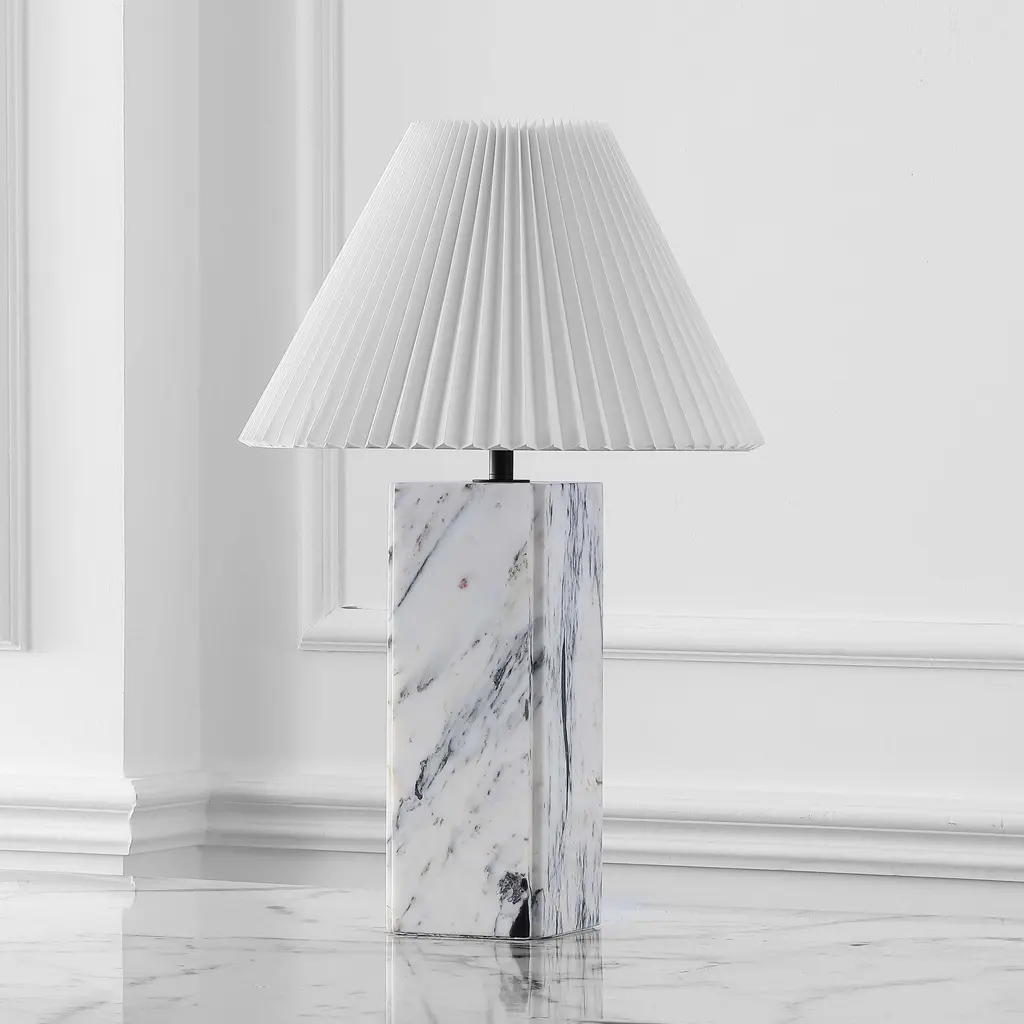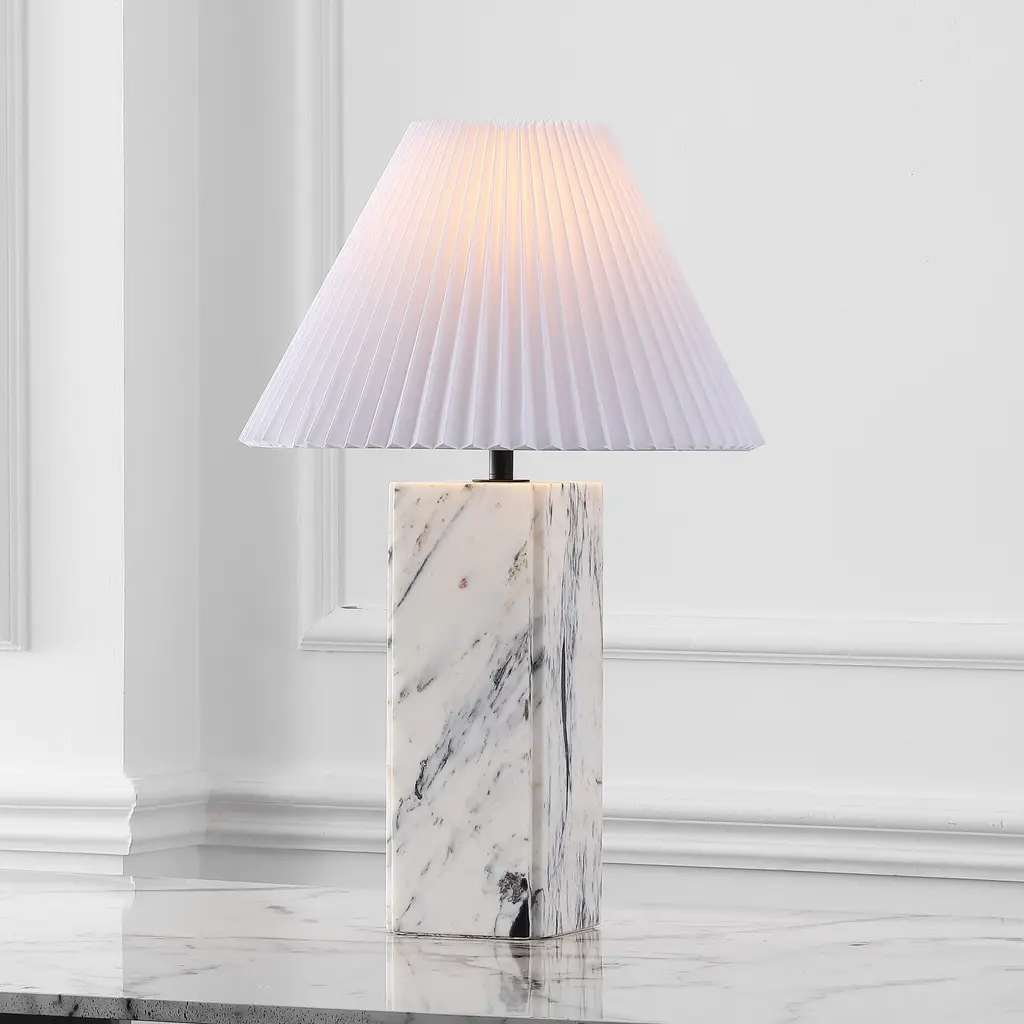 Introducing the MacKenzie Square Marble Table Lamp Lighting. Infused with an elegant colors scheme, this is one item that enhances any room décor. The sturdy Iron metal material stands sturdily, bearing the poised grace of the lamp and contributes to its overall durability. This lighting marvel is furnished with a marble base that delivers an extra touch of sophistication, making it the perfect centerpiece for your table. The lamp shade made from 100% cotton linen casts a warm, inviting glow in your space, creating the perfect ambiance for relaxation and tranquility. Add sophistication, grace, and charm to your home with this MacKenzie Square Marble Table Lamp. Its impressive blend of simplicity and elegance delivers a tasteful style that will surely accentuate any room it is placed in. Don't wait, illuminate your living room or bedroom with beauty and charm with this stunning lamp.