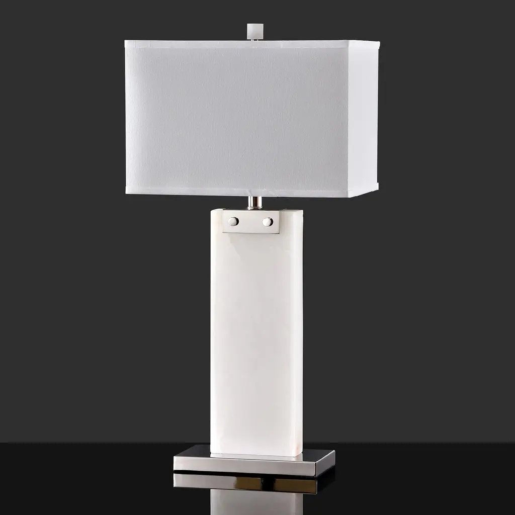 Overflowing with eye-catching intrigue, this Morgen Table Lamp pulls out all the stops. Morgen's handmade glamorous white alabaster panel body is given an industrial-chic edge with exposed hardware in a shimmering nickel finish, and a clean-lined rectangle shade completes the look.