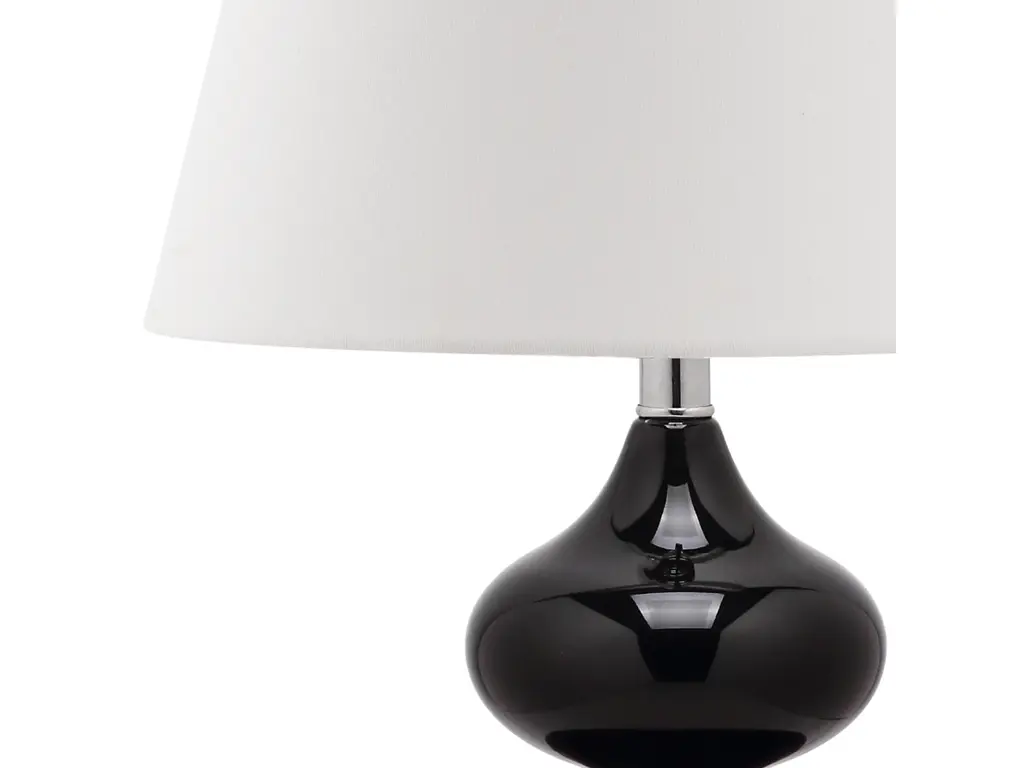 Illuminate your living room, bedroom or family room in a contemporary way with this double gourd table lamp. Shapely glass base is topped with a clean and simple white fabric shade for a fresh complement. Sold as a set of two.