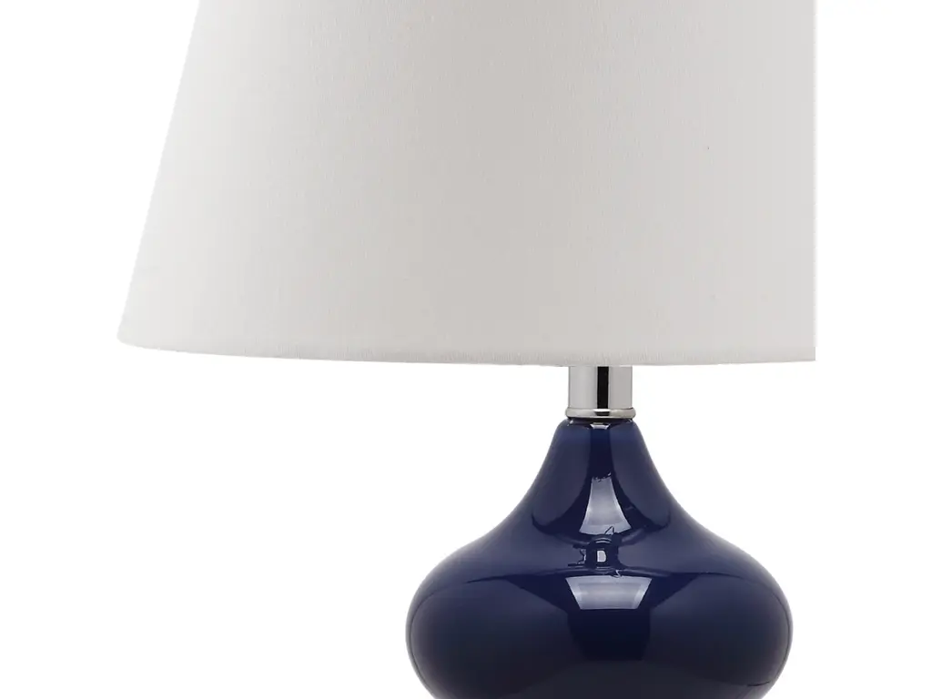 Illuminate your living room, bedroom or family room in a contemporary way with this double gourd table lamp. Shapely glass base is topped with a clean and simple white fabric shade for a fresh complement. Sold as a set of two.