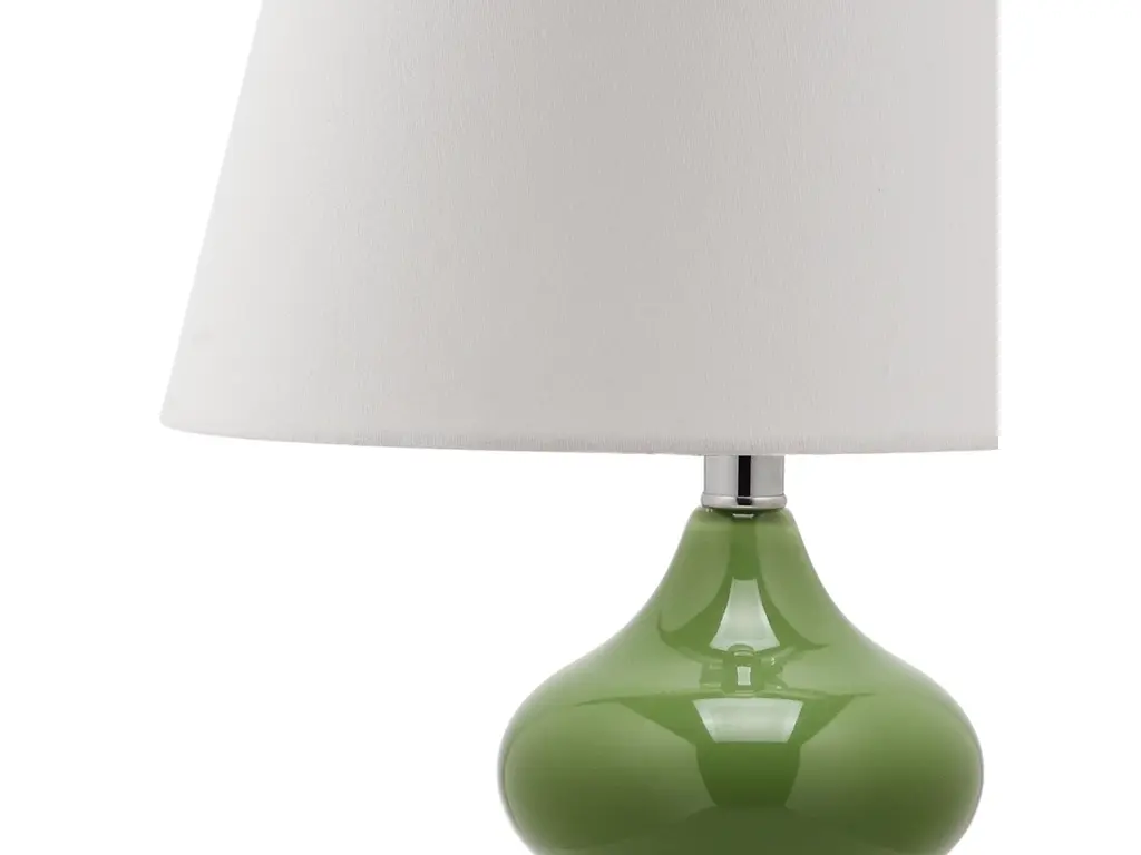 Illuminate your living room, bedroom or family room in a contemporary way with this double gourd table lamp. Shapely glass base is topped with a clean and simple white fabric shade for a fresh complement. Sold as a set of two.
